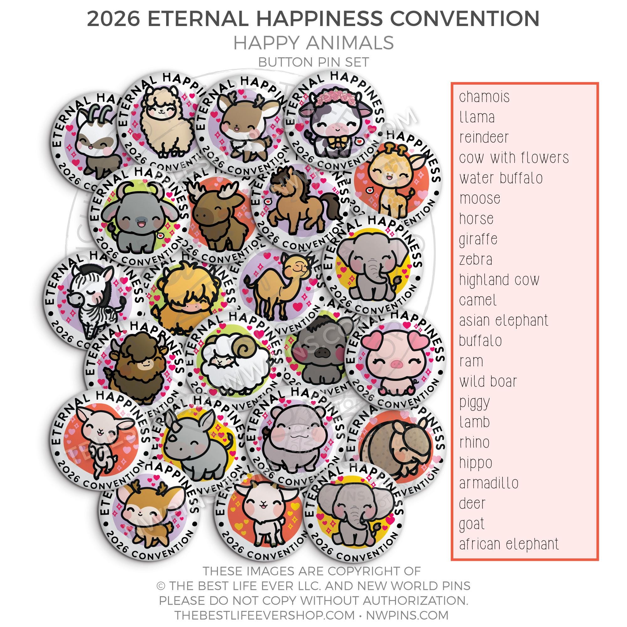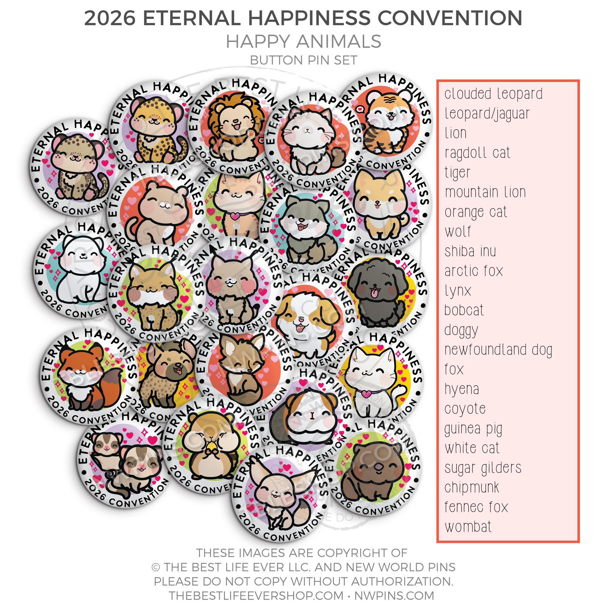 ❤︎2026 Eternal Happiness Regional Convention HAPPY ANIMALS Button Pins❤︎
