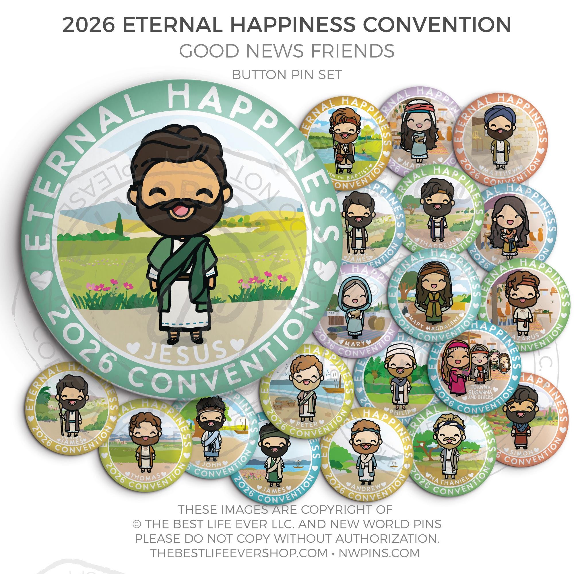 ❤︎ 2026 Eternal Happiness: The Good News According to Jesus Button Pin Set ❤︎