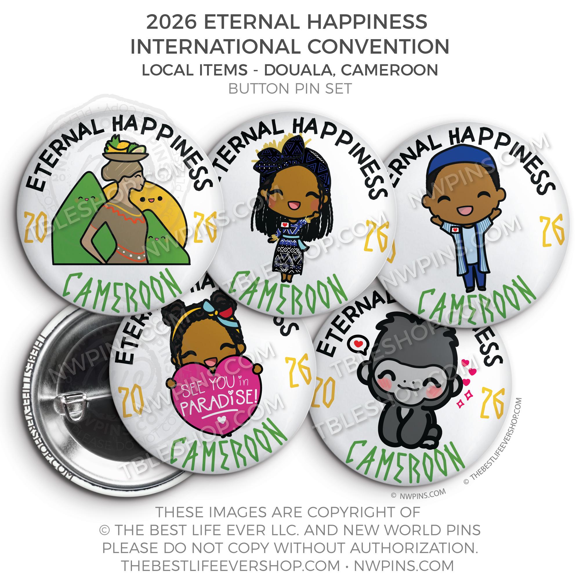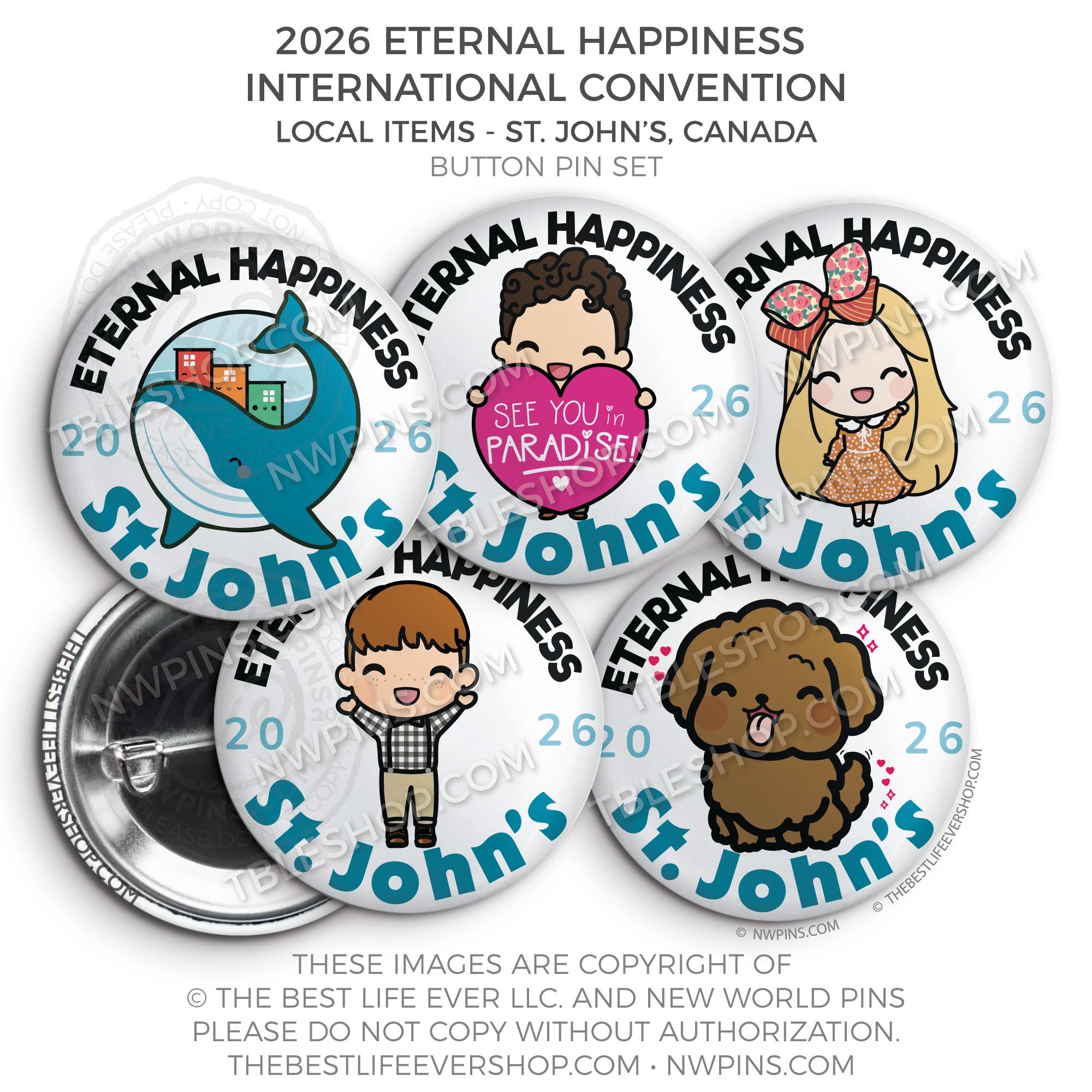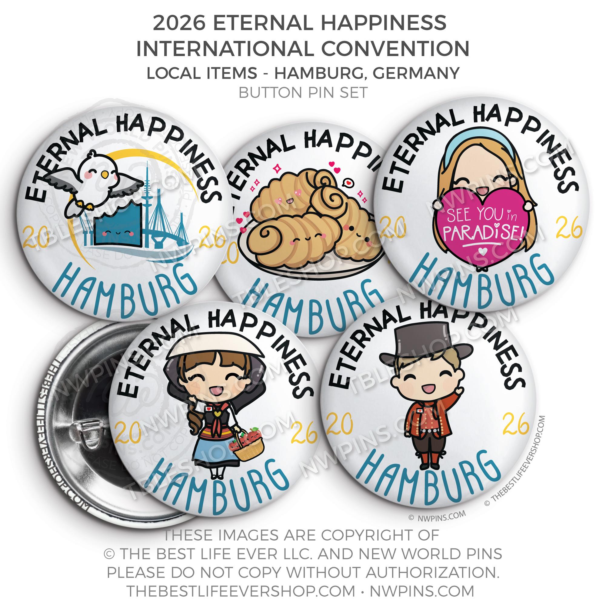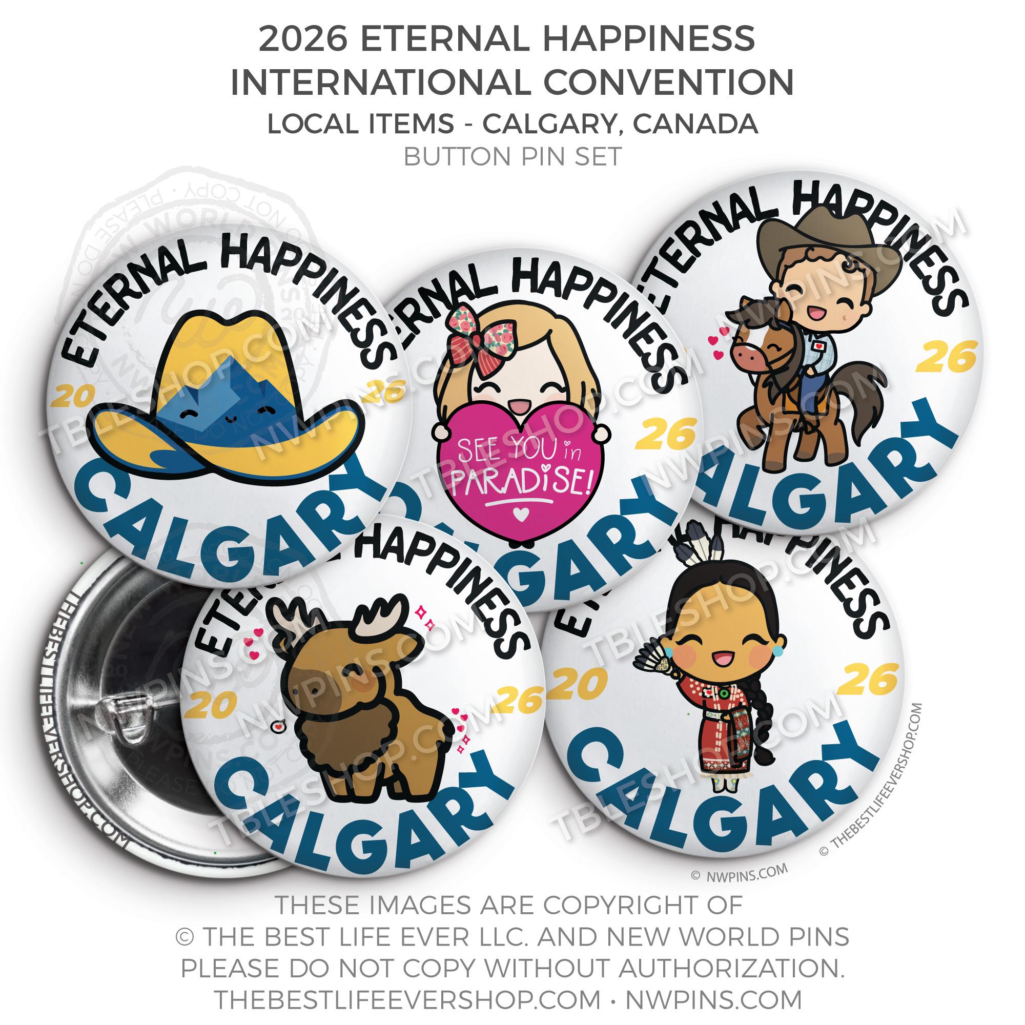 Get ready for the International convention with our button pin set! A great keepsake celebrating what makes each convention city special.