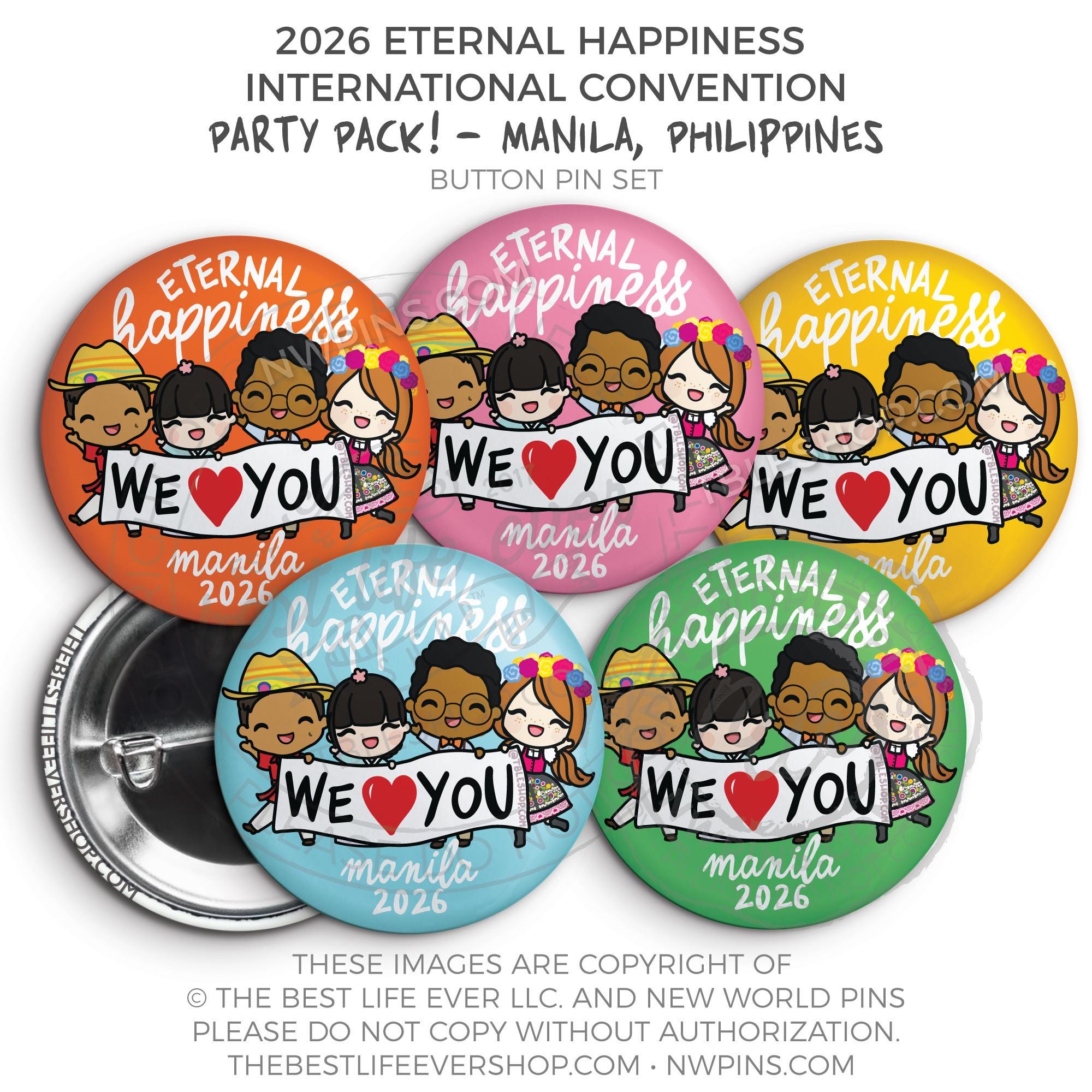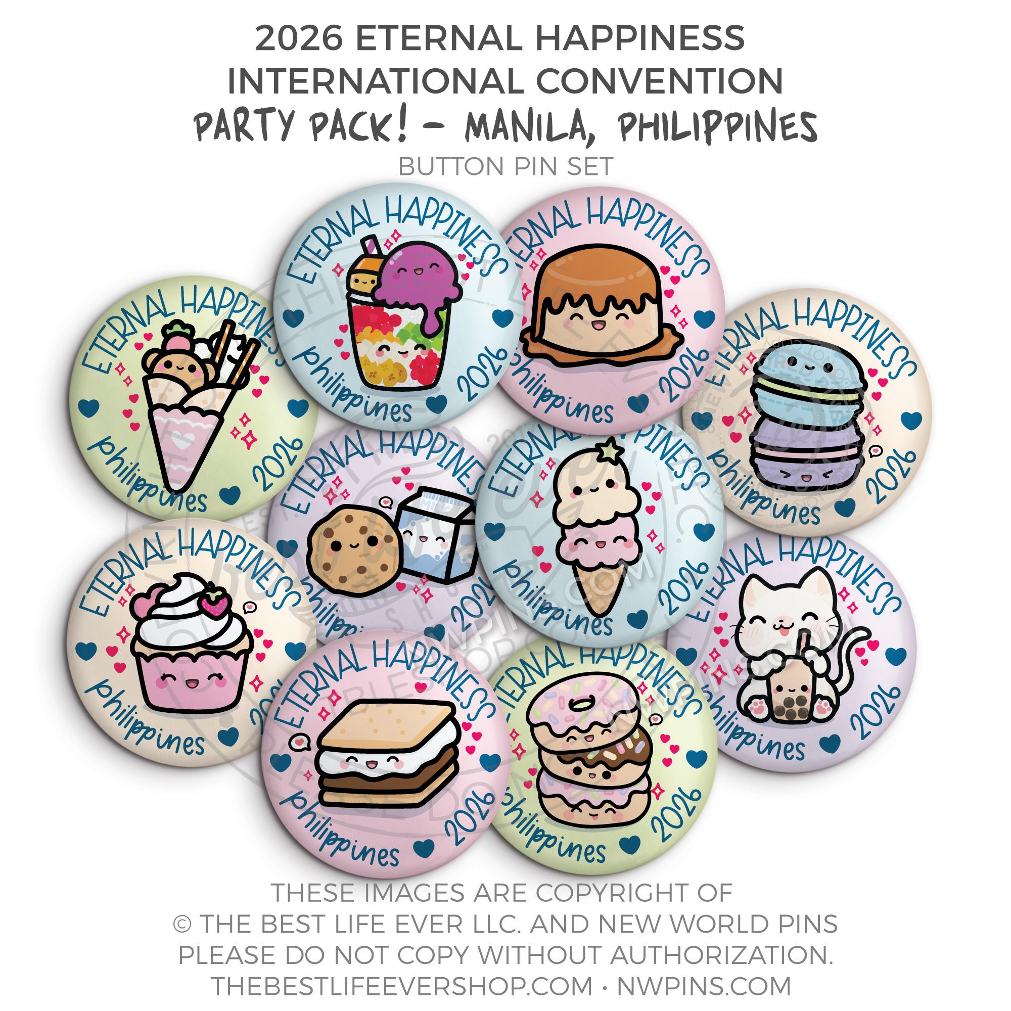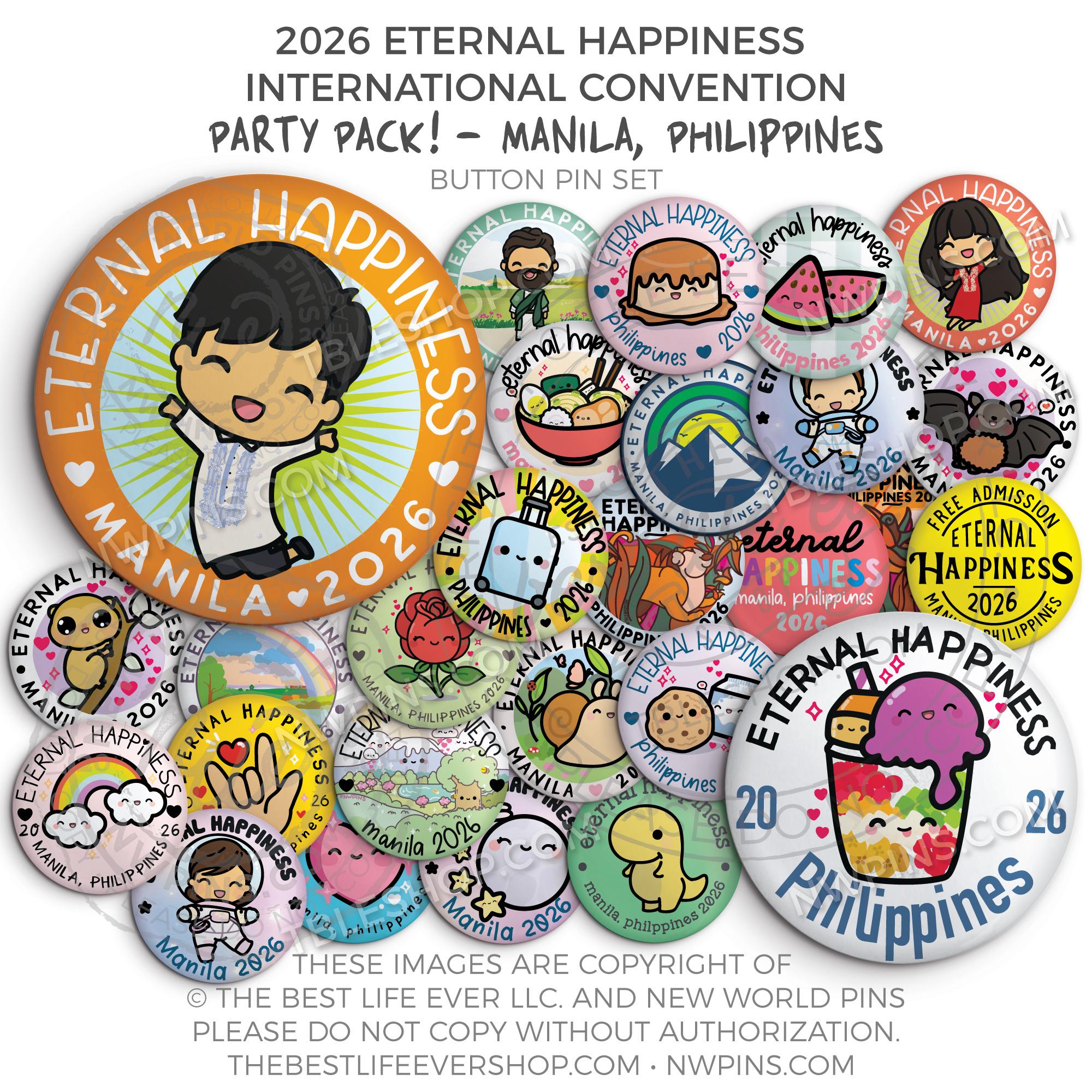 ❤︎ Eternal Happiness 2026 Manila, Philippines International Convention Button Pins Party Pack ❤︎