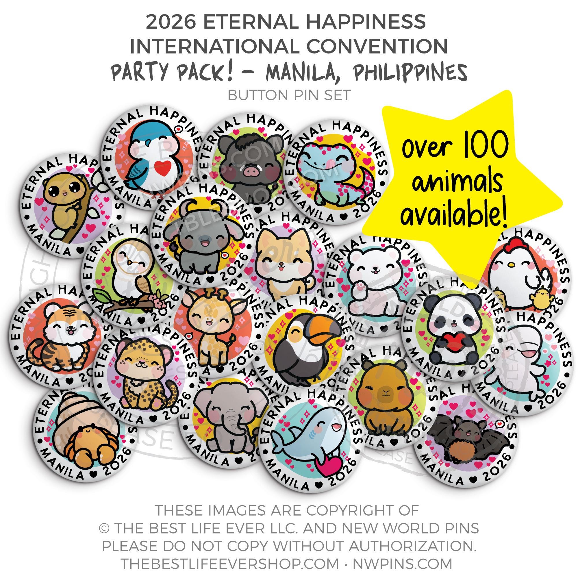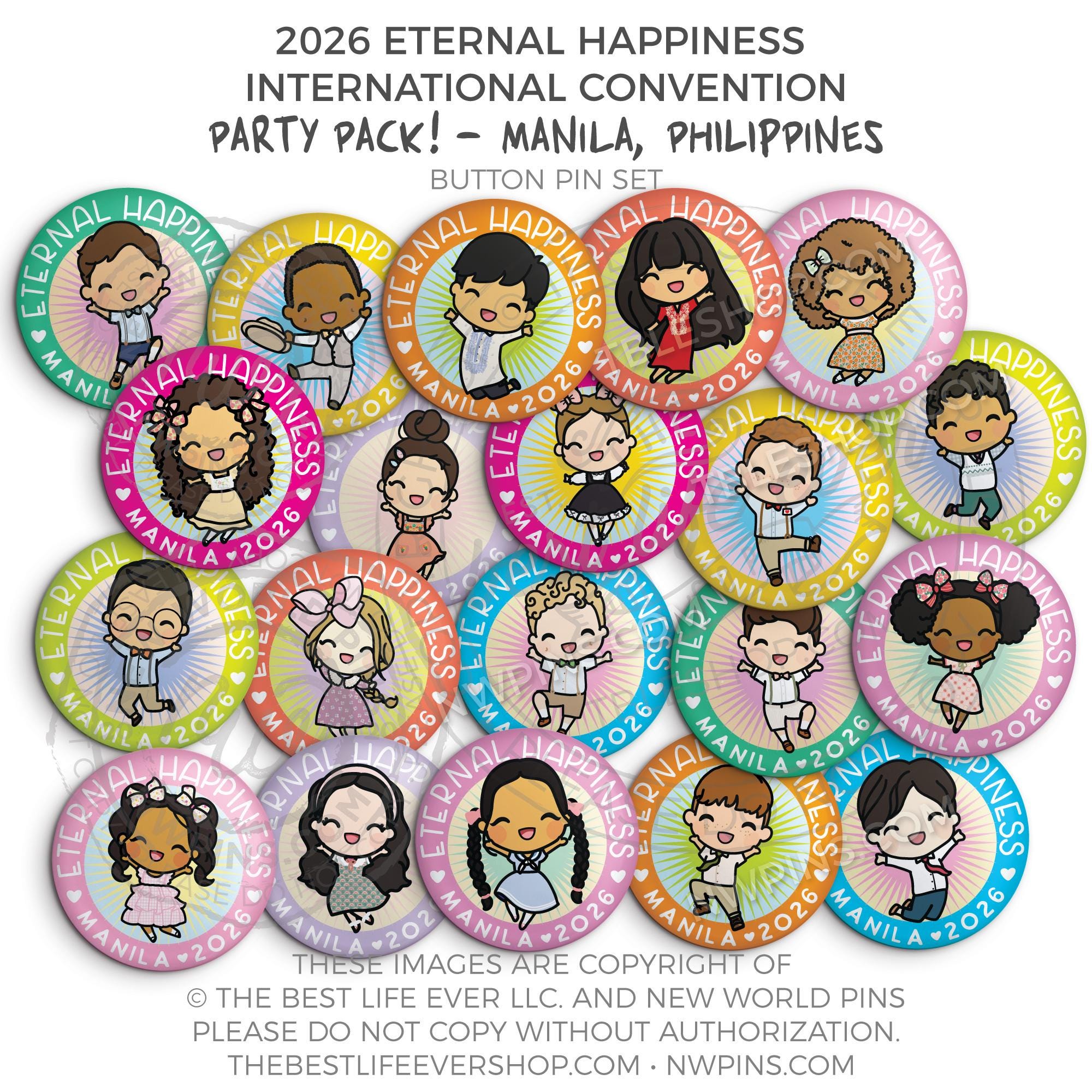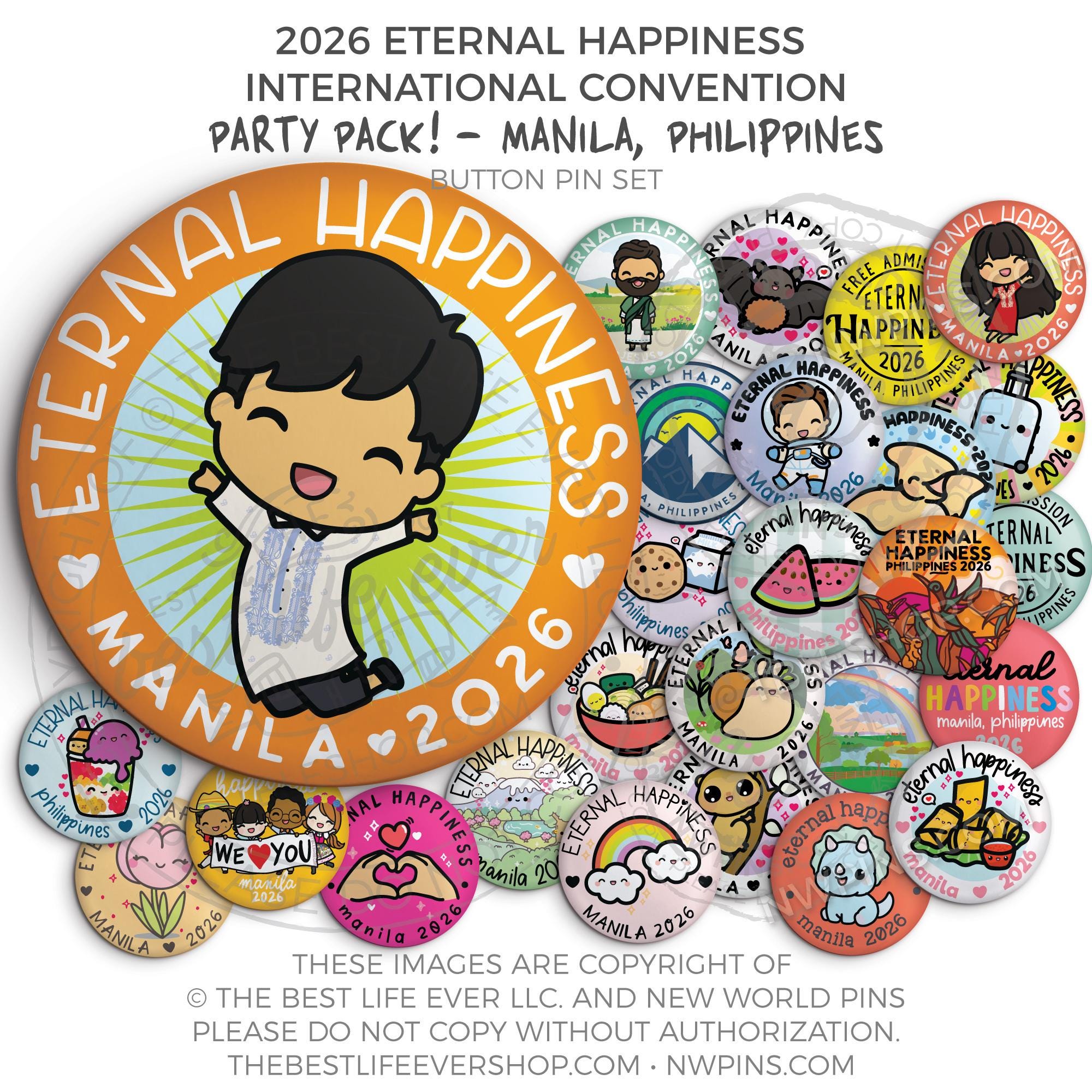 ❤︎ Eternal Happiness 2026 Manila, Philippines International Convention Button Pins Party Pack ❤︎