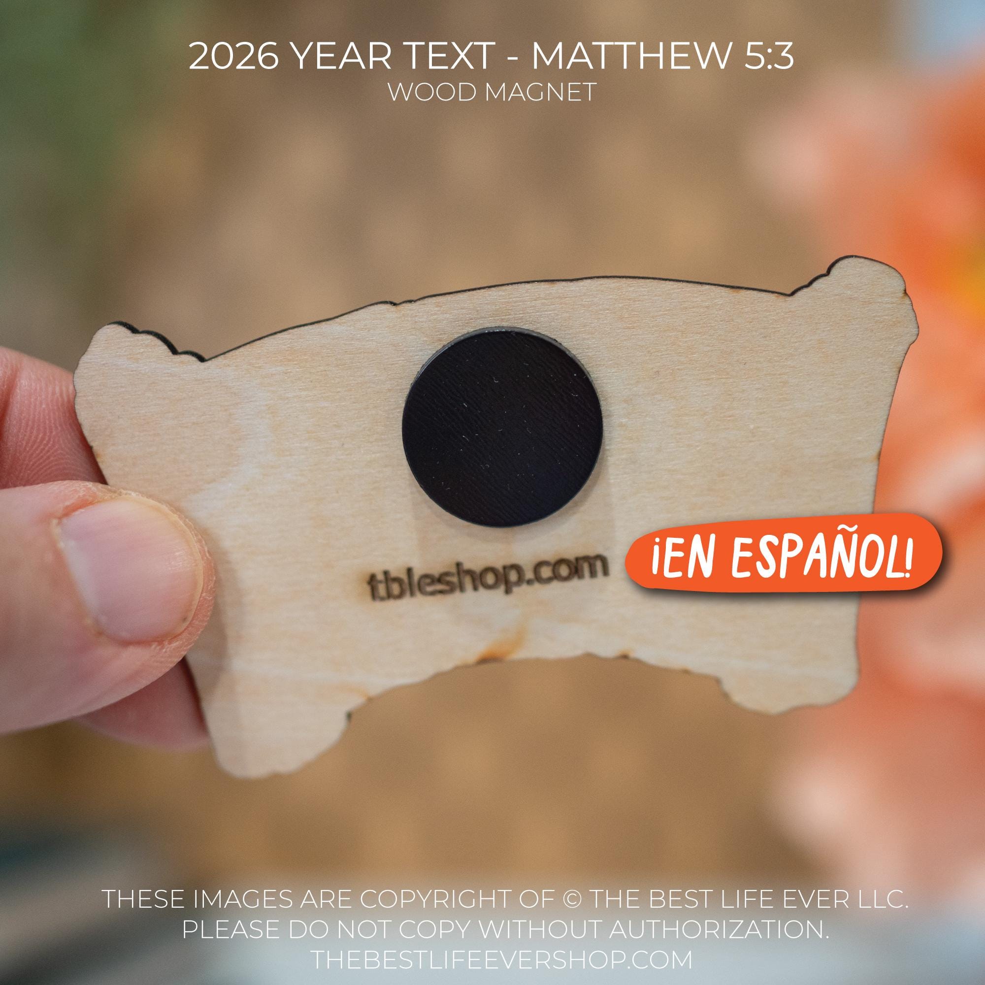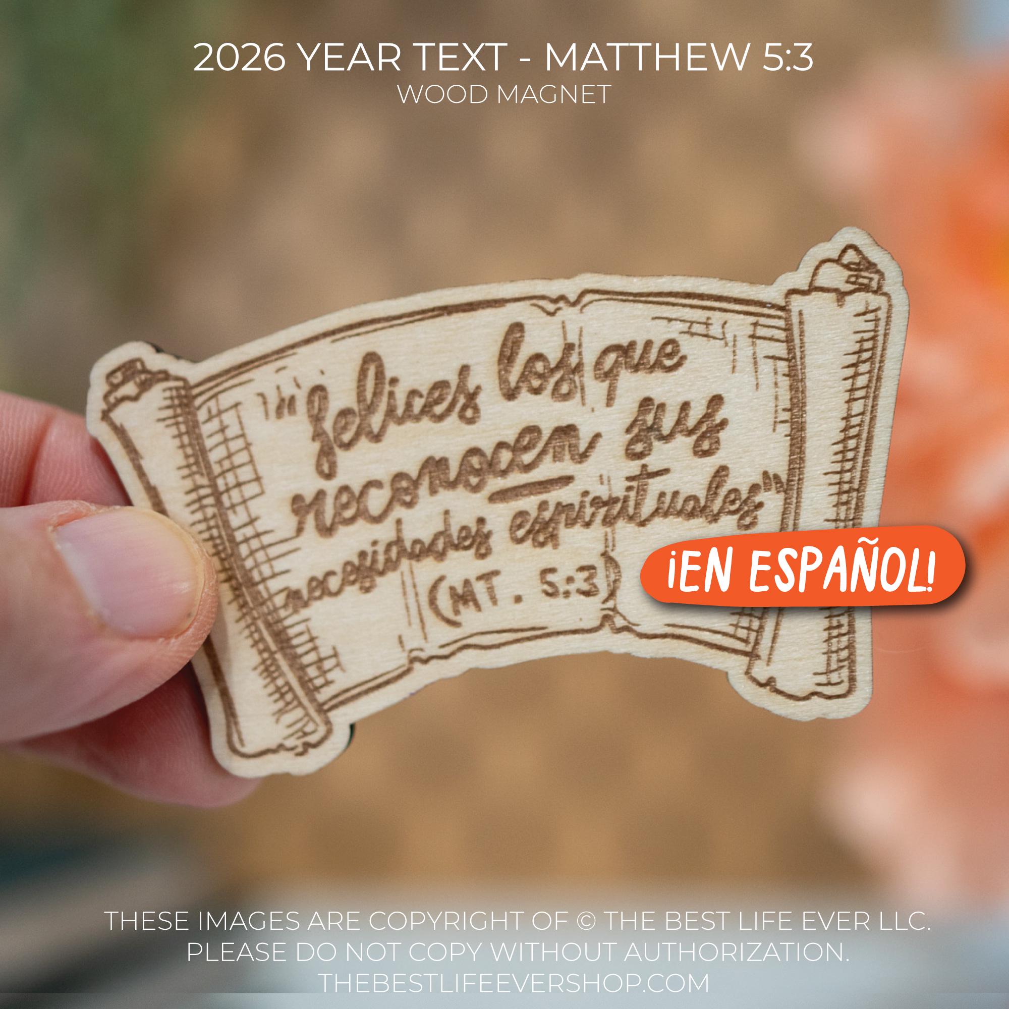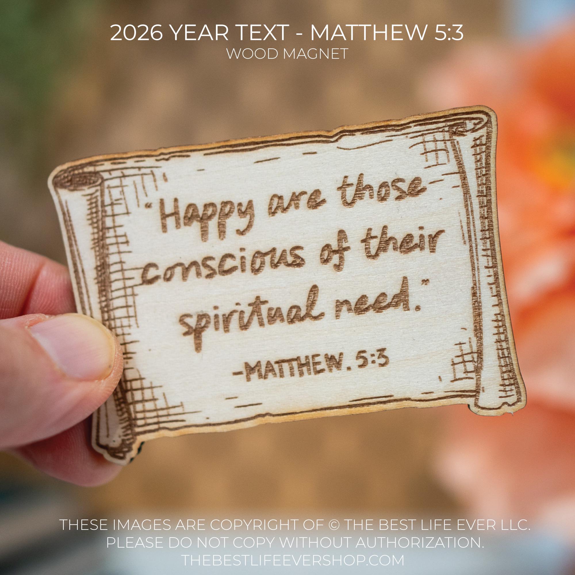 JW Year Text Wood Magnet - Matthew 5 3 - 2026 service year
