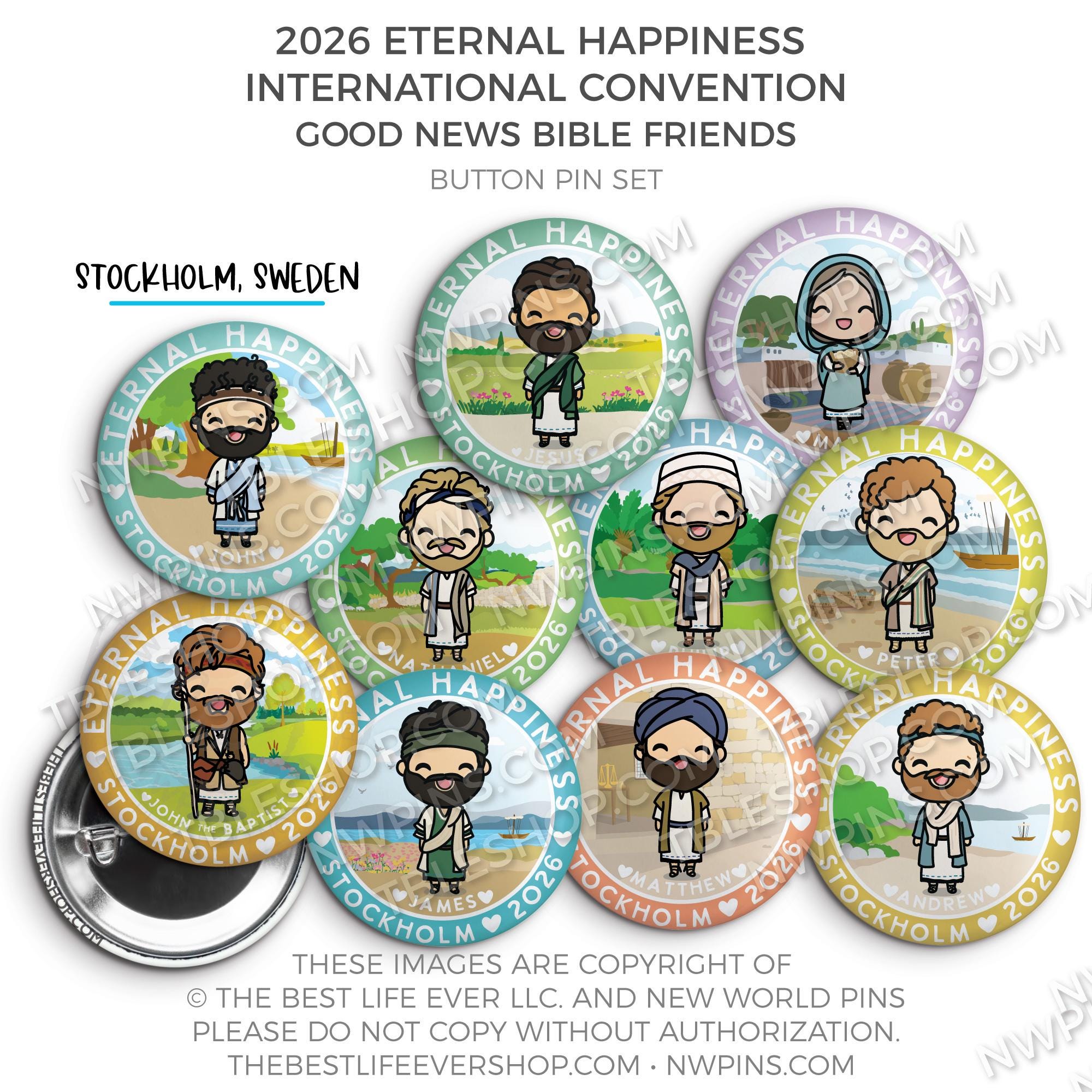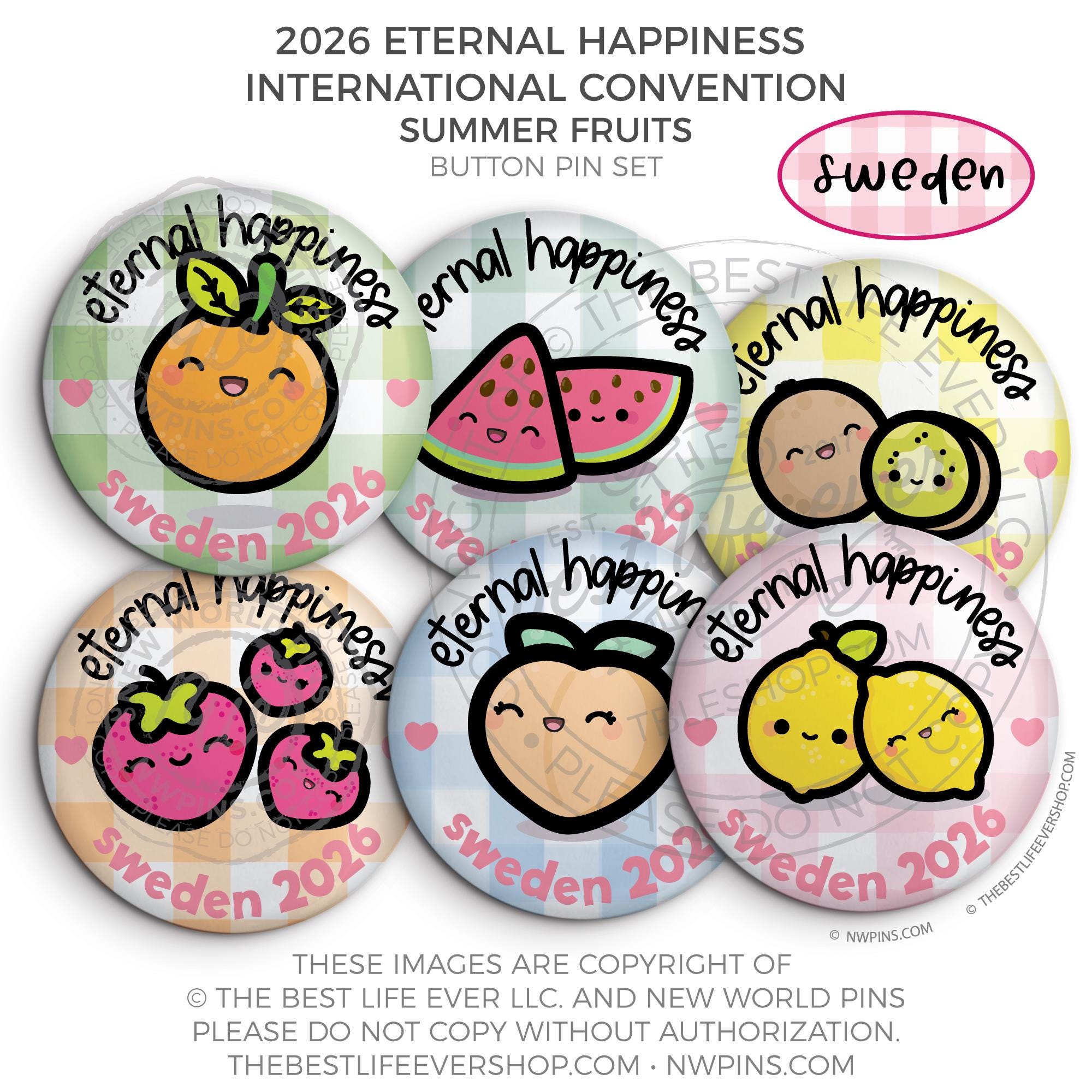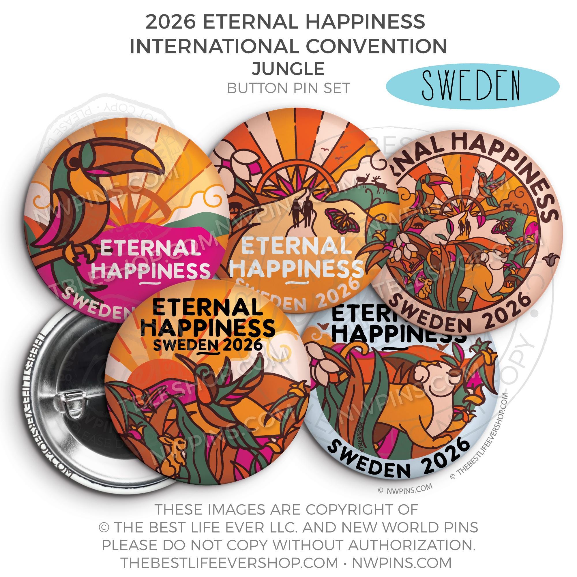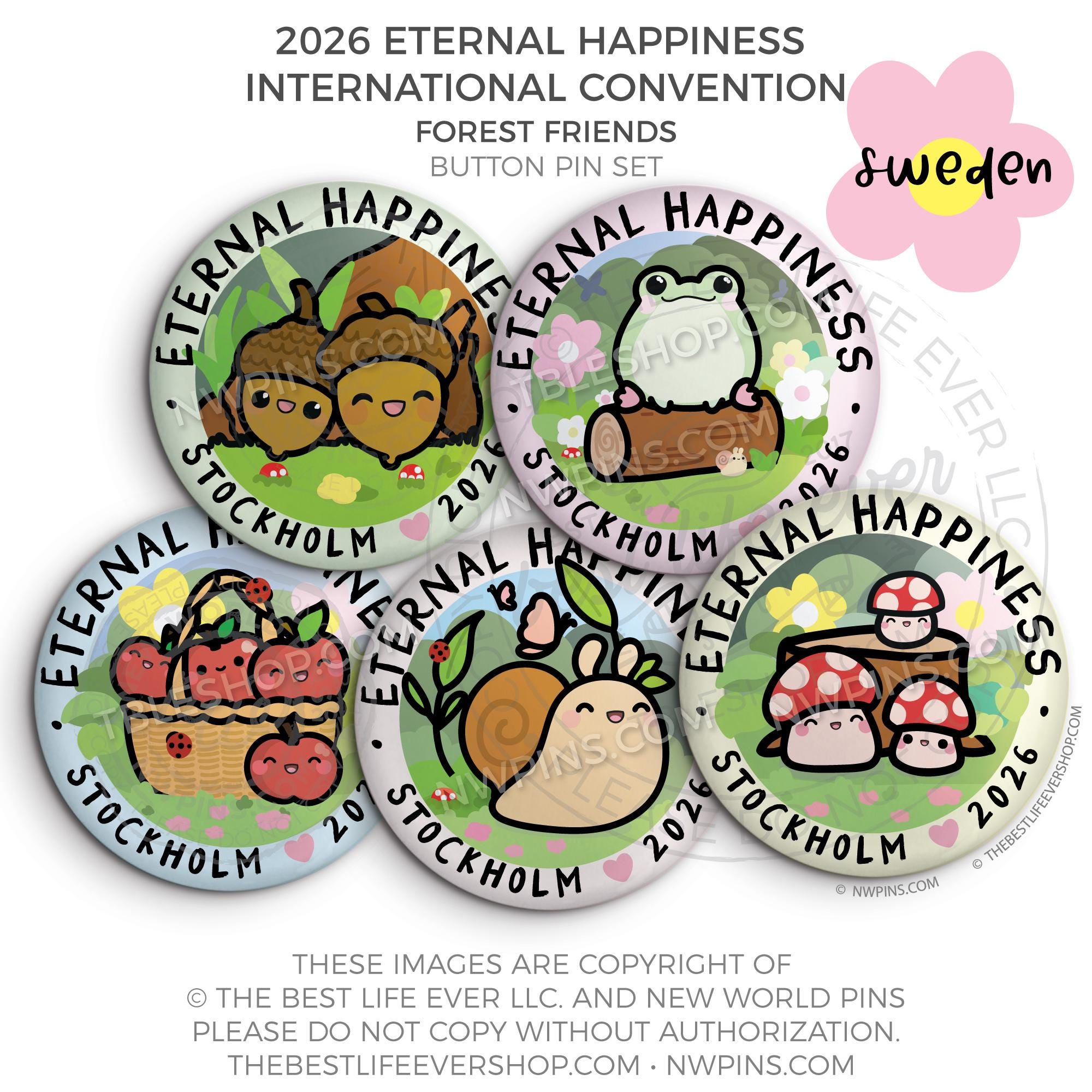 ❤︎ Eternal Happiness 2026 Stockholm, Sweden International Convention Button Pins Party Pack ❤︎