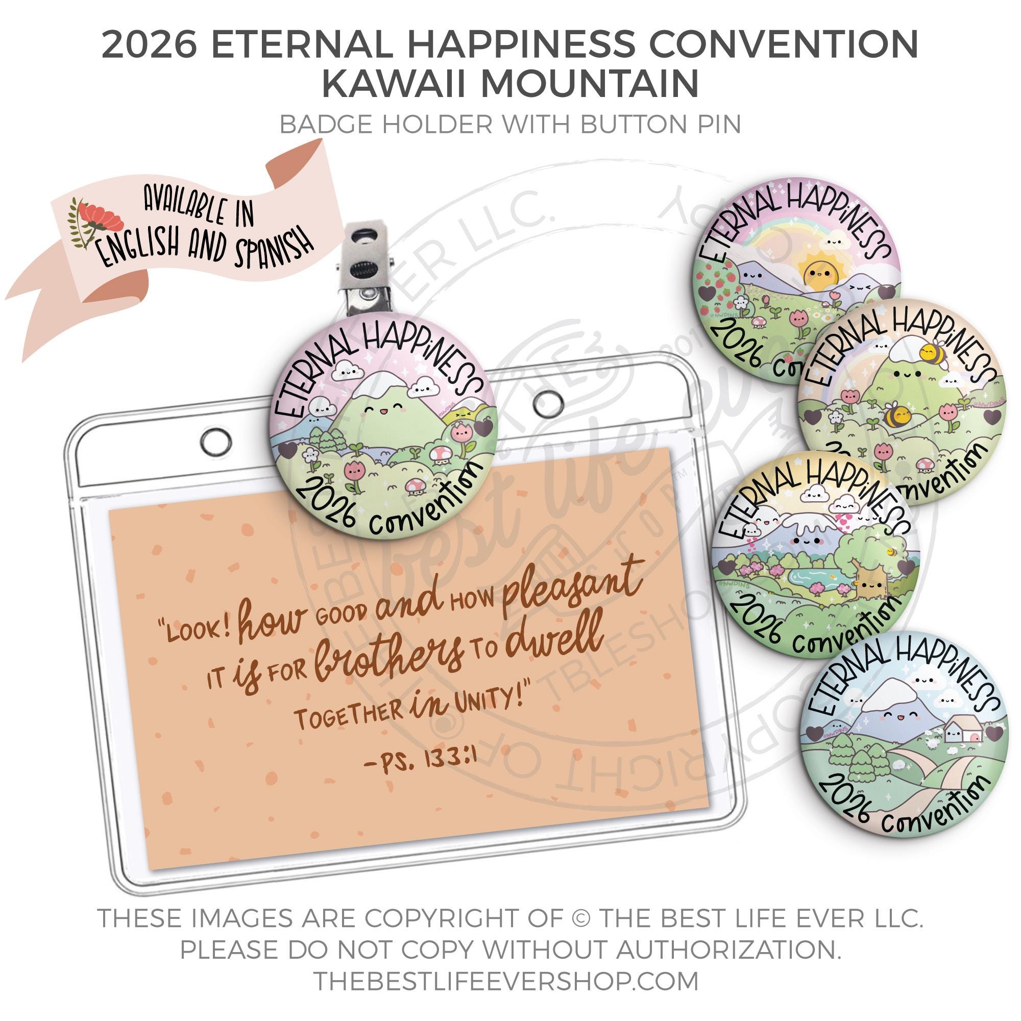 ❤︎2026 Regional and International Convention Kawaii Mountain Scenes Button Pin and Badge Holder with Insert❤︎