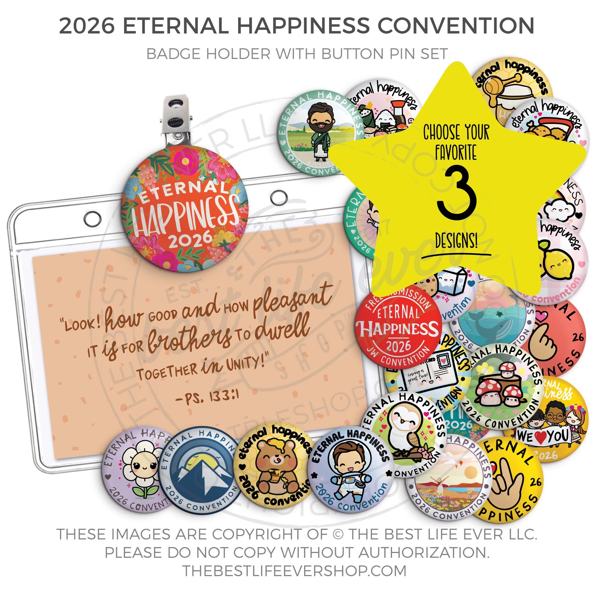 ❤︎ Get ready for the upcoming Regional Convention with our 3 button and 1 badge holder set!! Choose your favorite 3 button pins and wear a different pin every day!