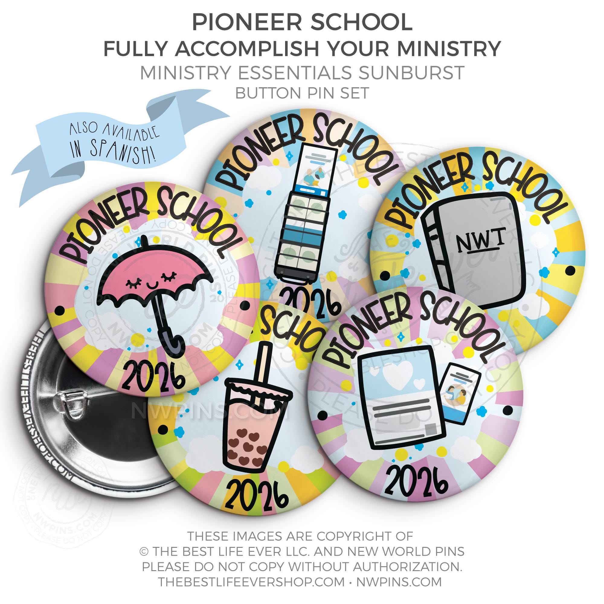 ❤︎ Pioneer School Ministry Essentials Sunburst Button Pin Set ❤︎