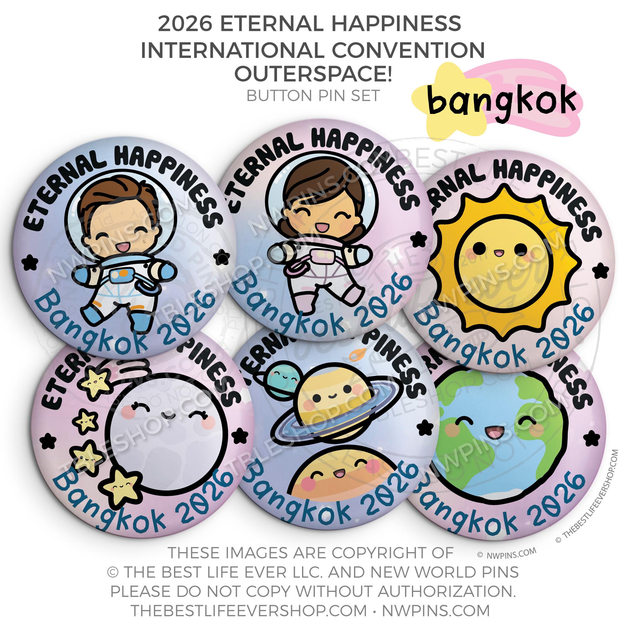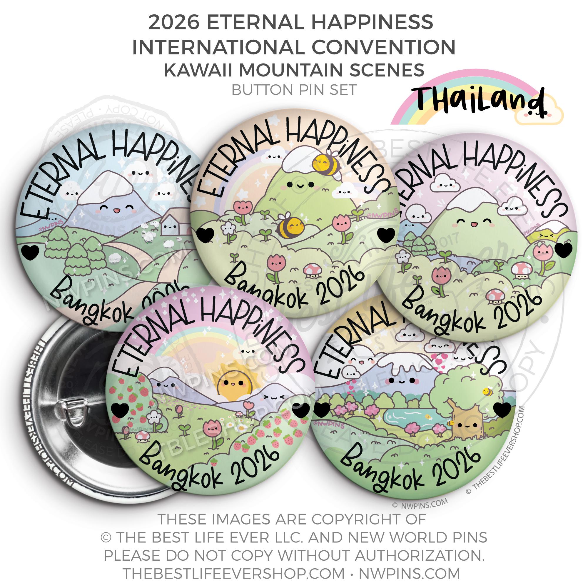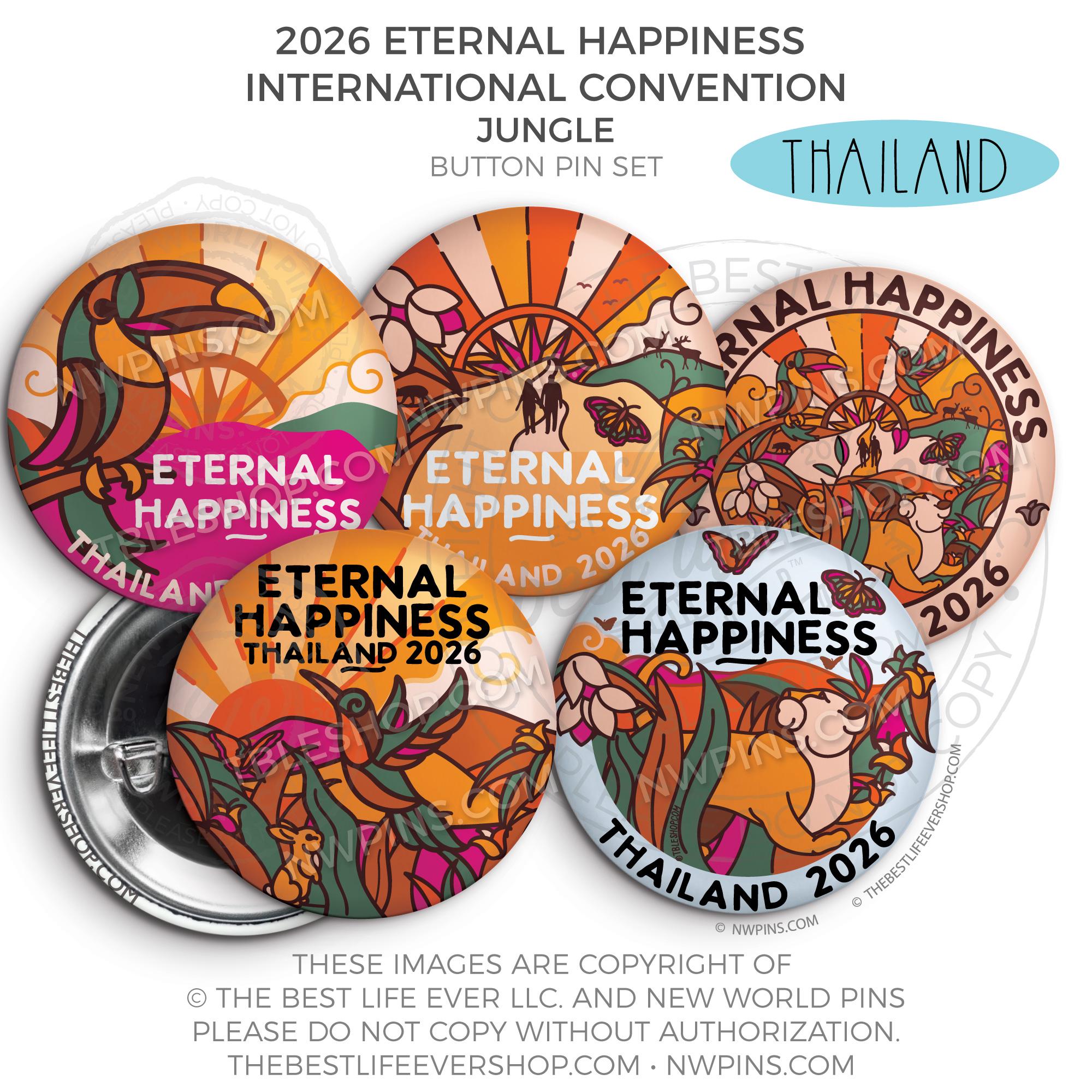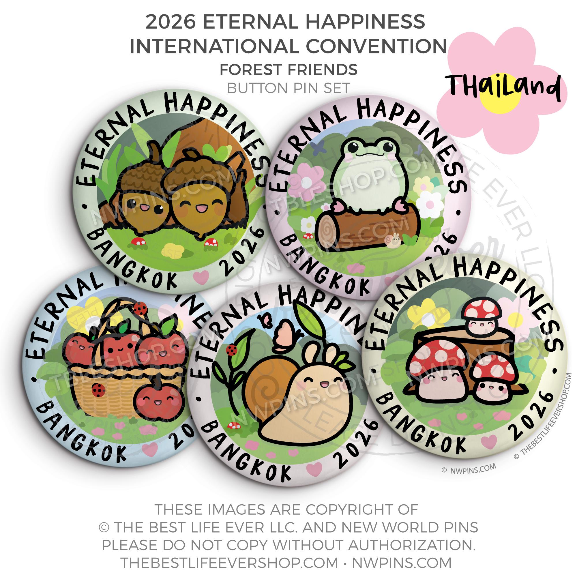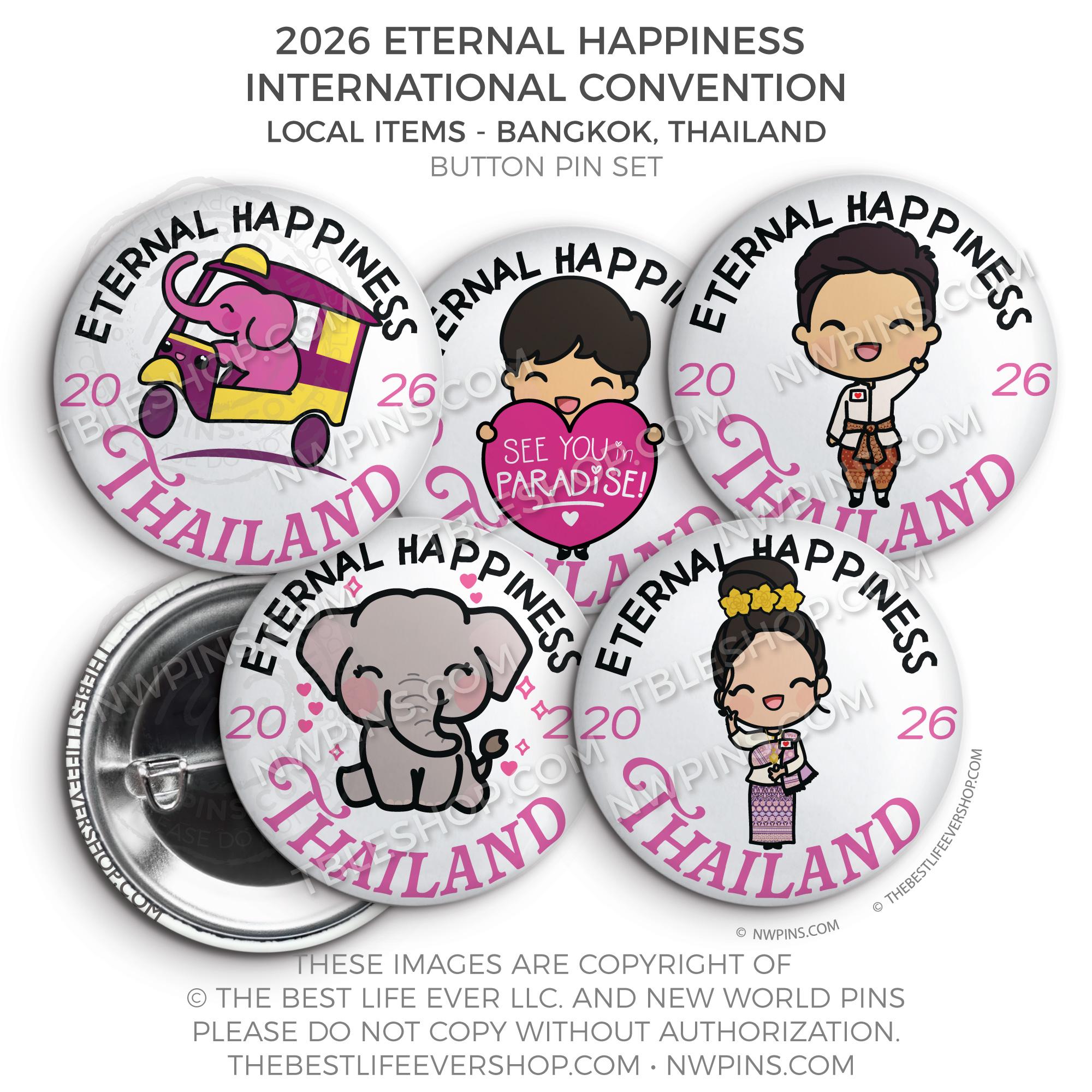 ❤︎ Eternal Happiness 2026 Bangkok, Thailand International Convention Button Pins Party Pack ❤︎