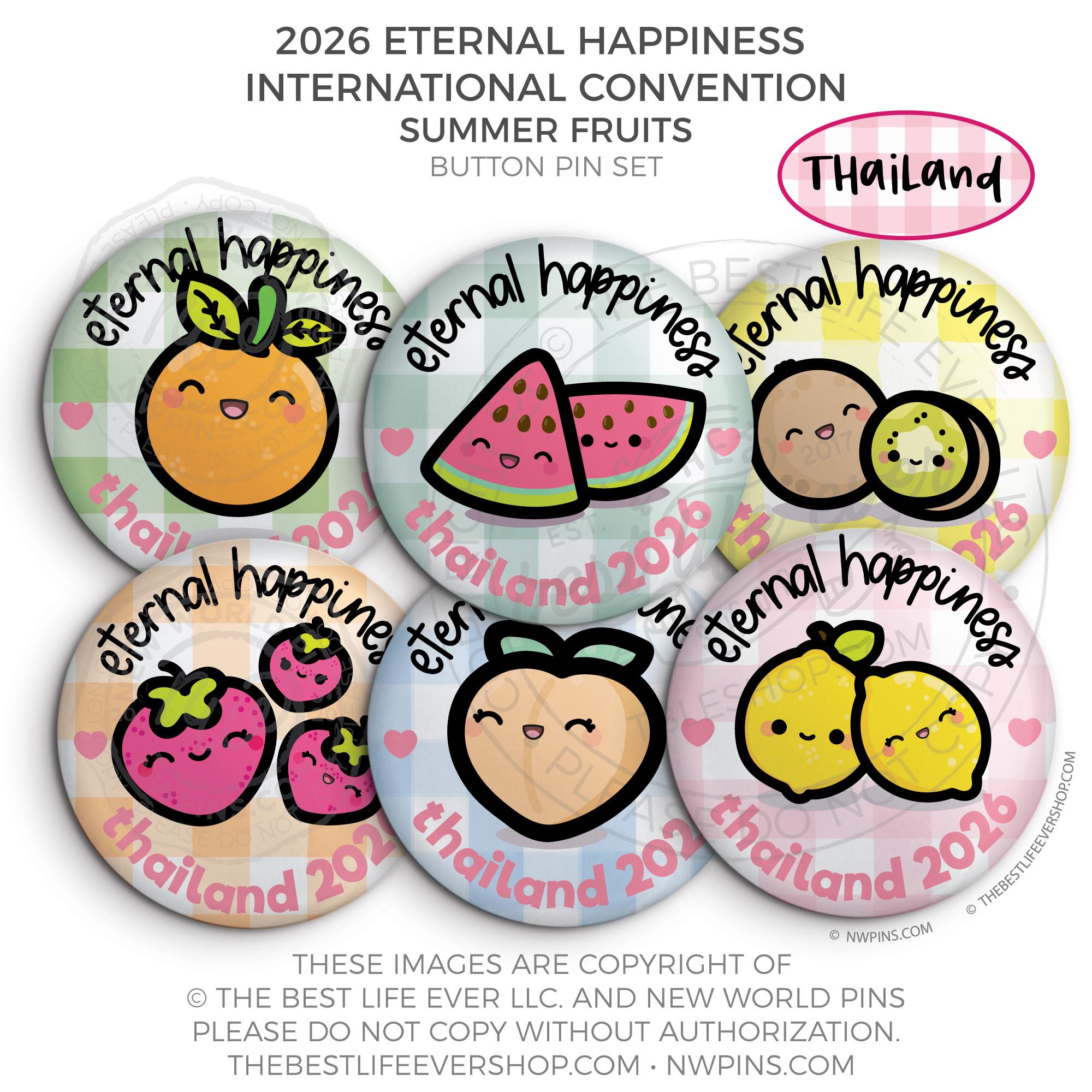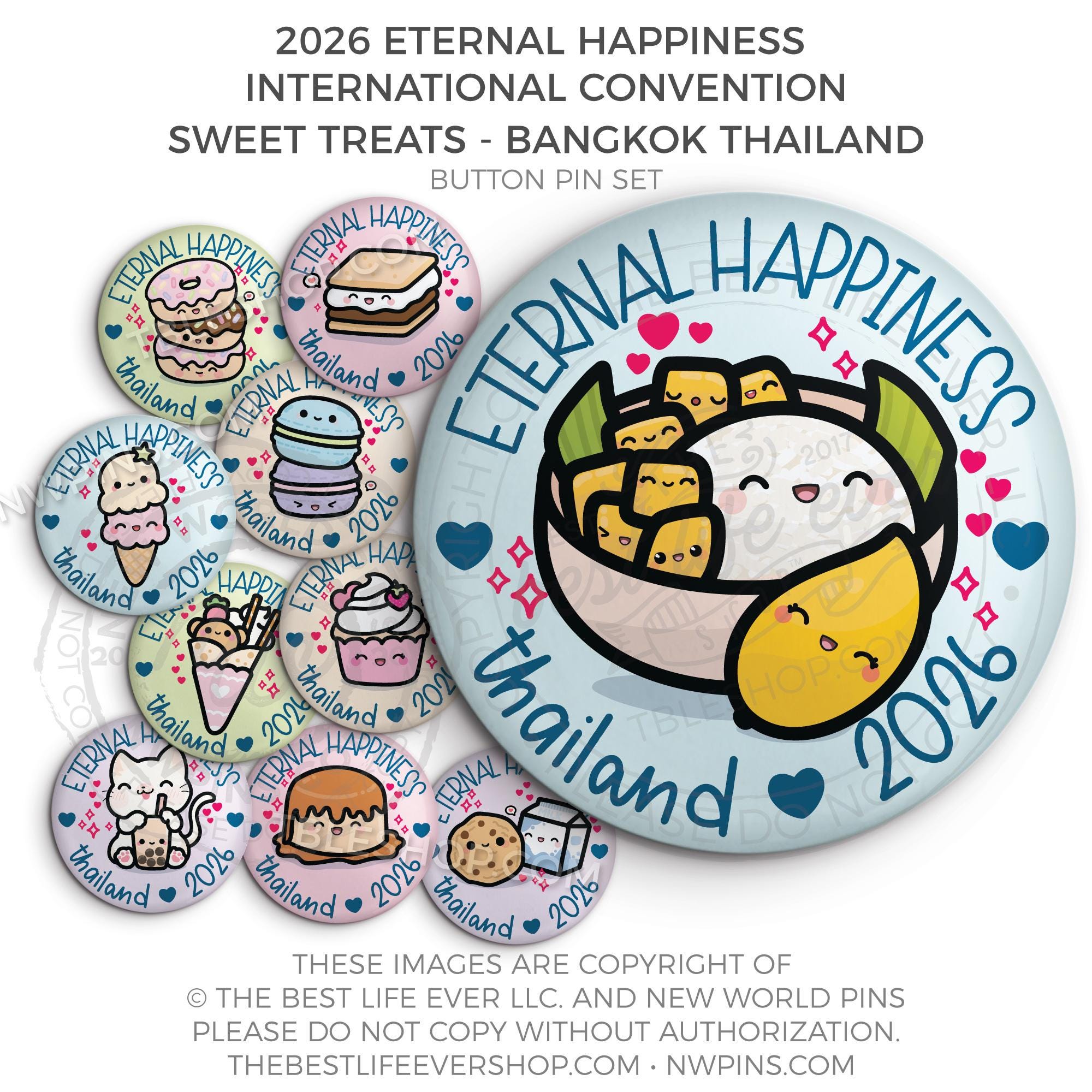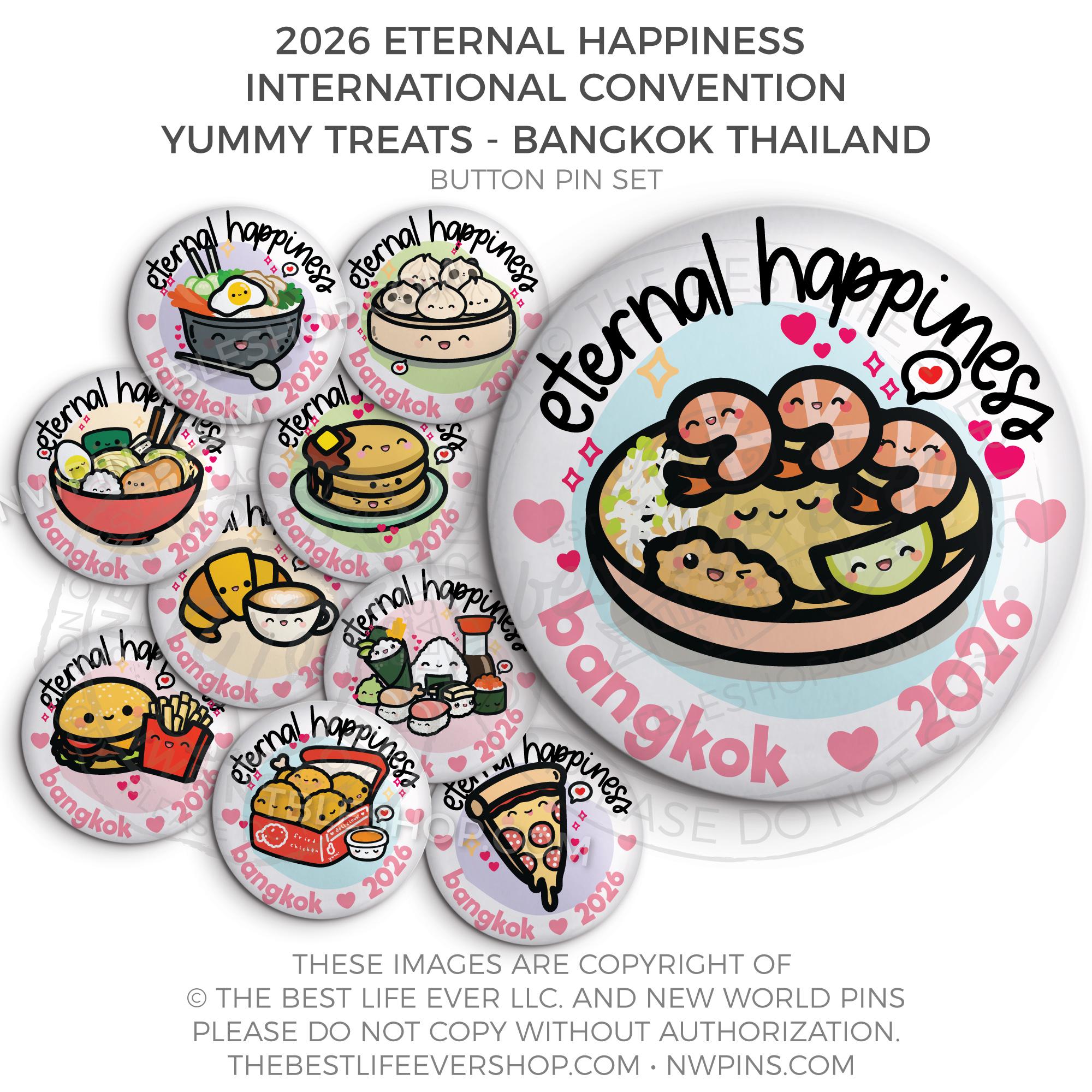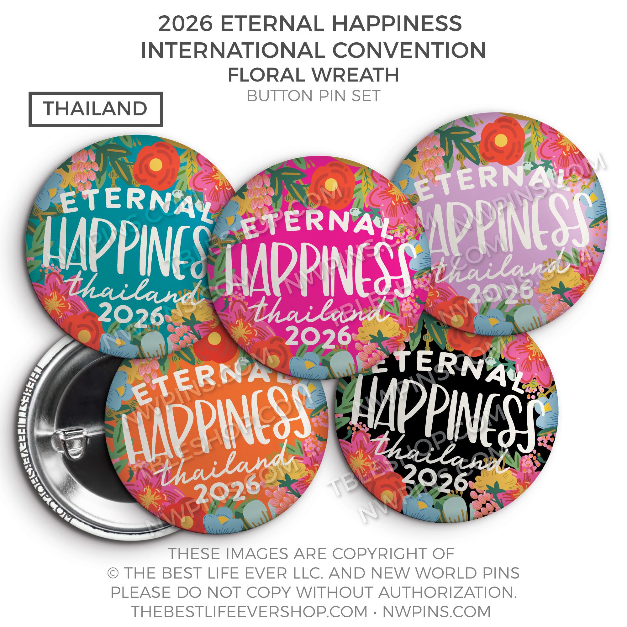❤︎ Eternal Happiness 2026 Bangkok, Thailand International Convention Button Pins Party Pack ❤︎