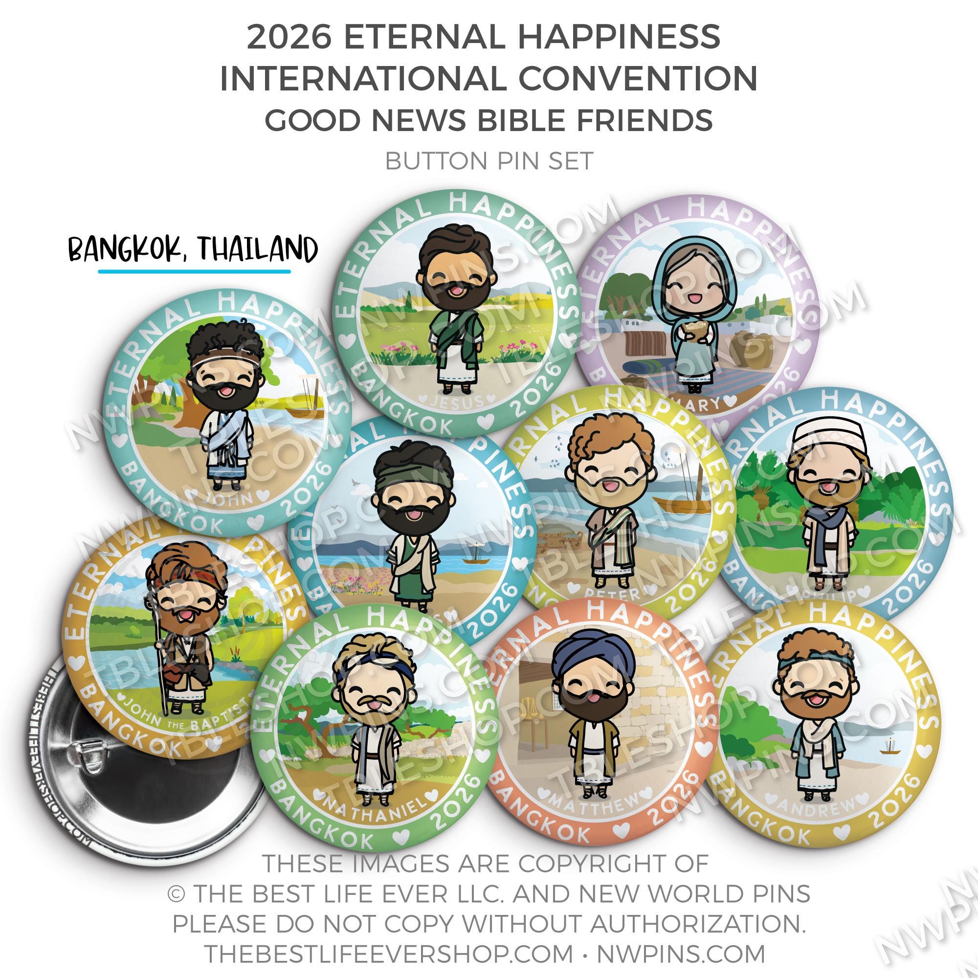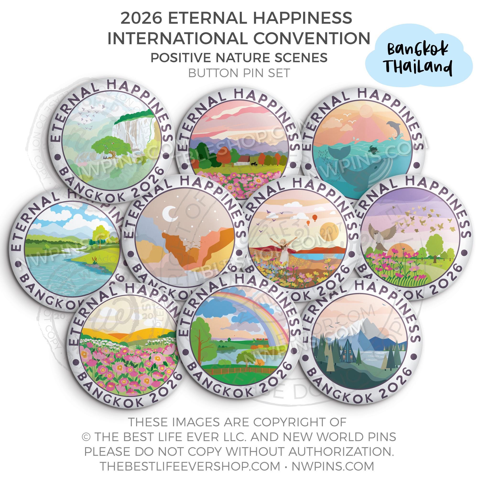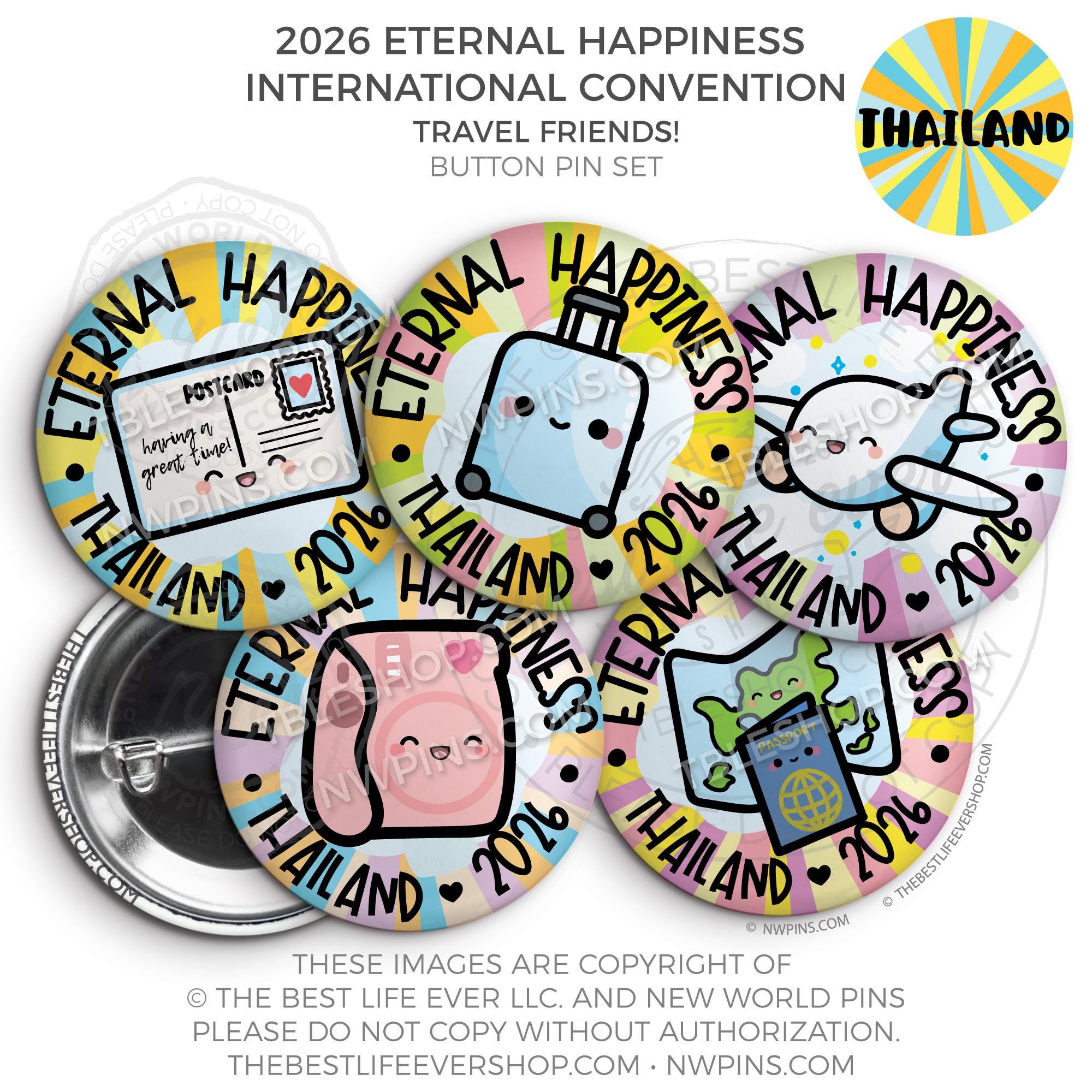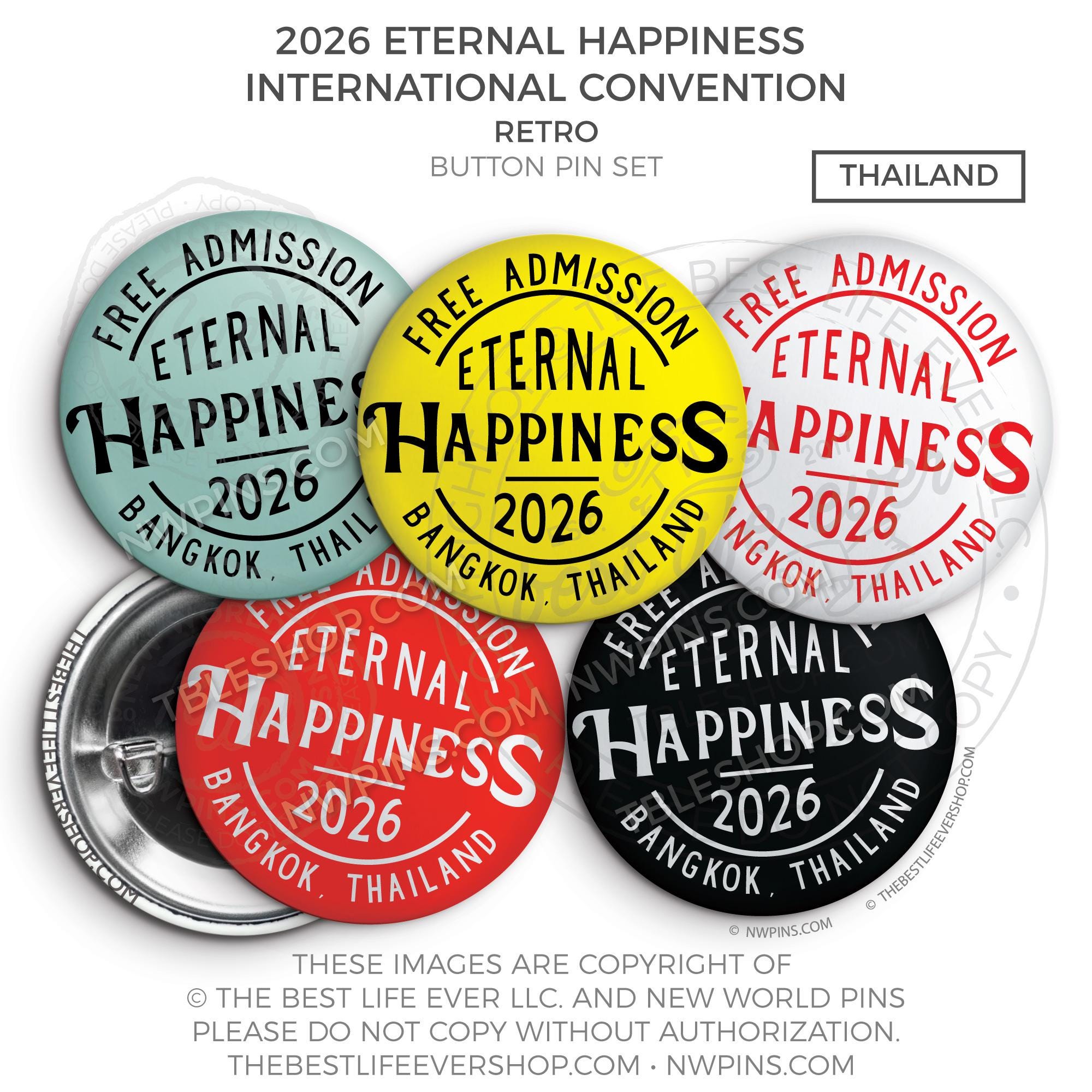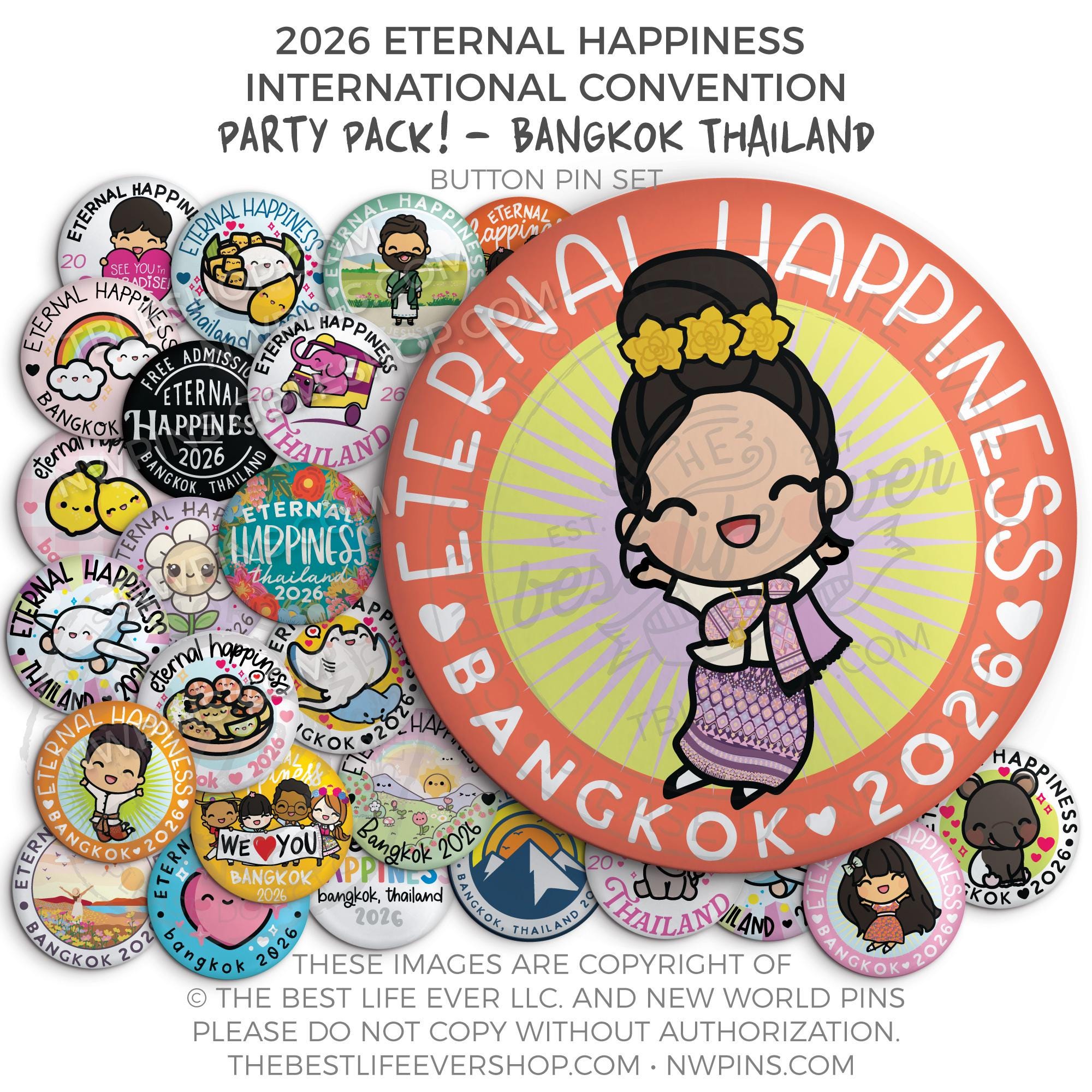 ❤︎ Eternal Happiness 2026 Bangkok, Thailand International Convention Button Pins Party Pack ❤︎