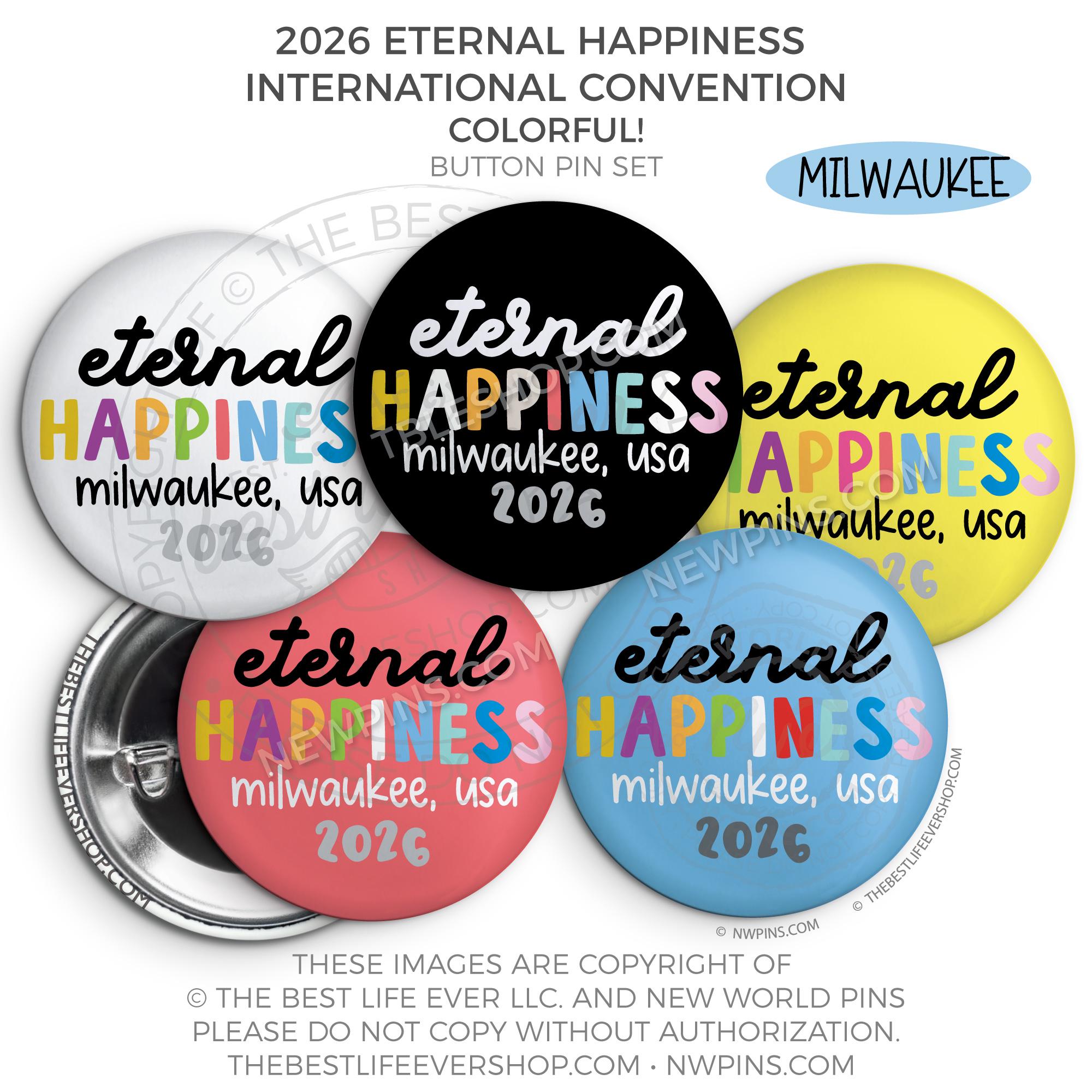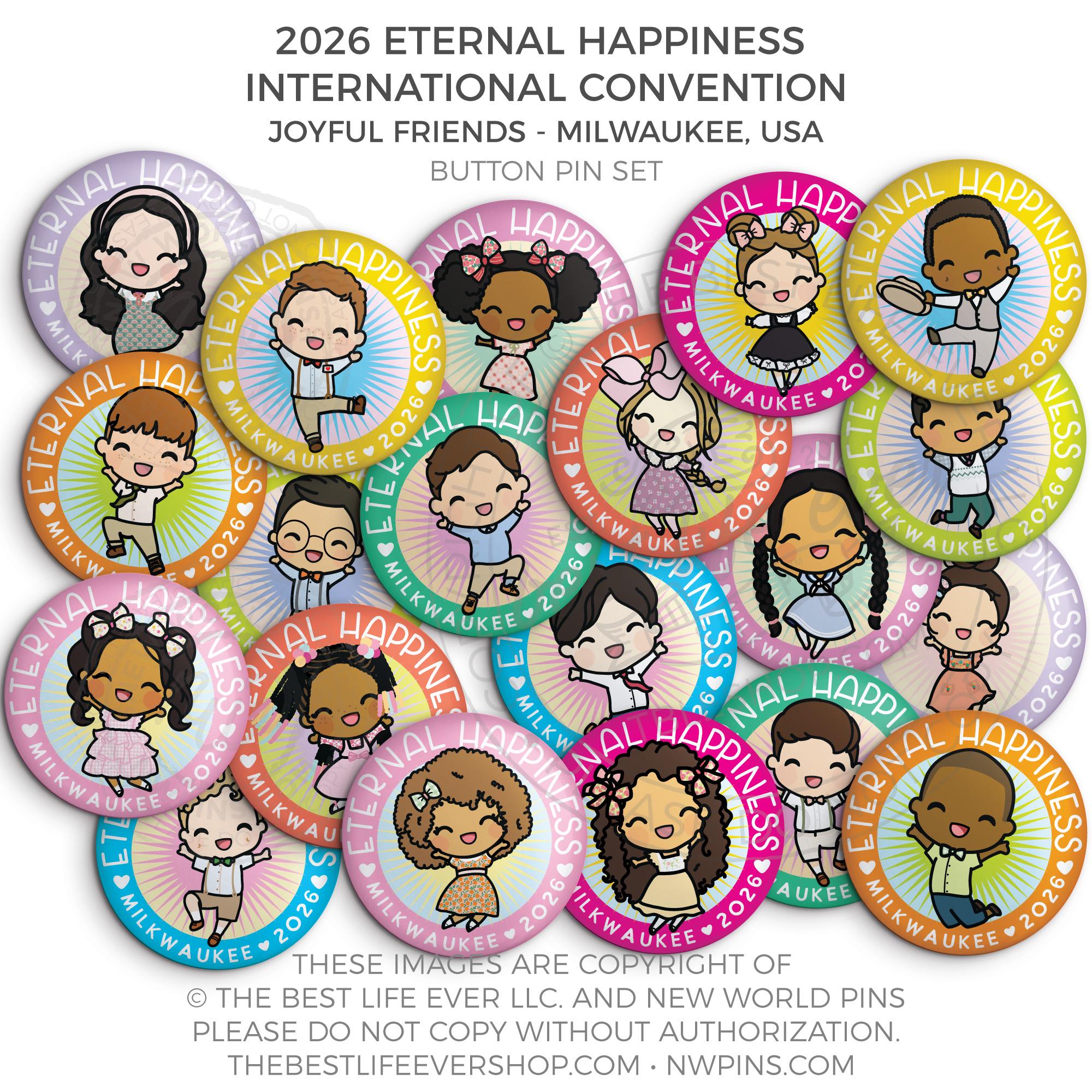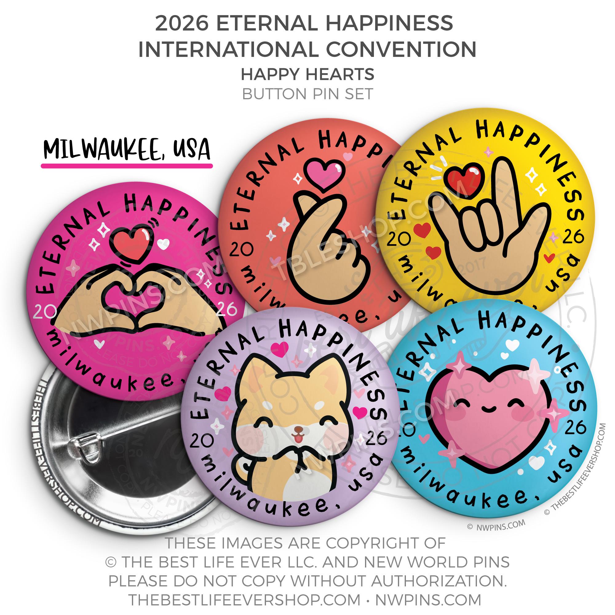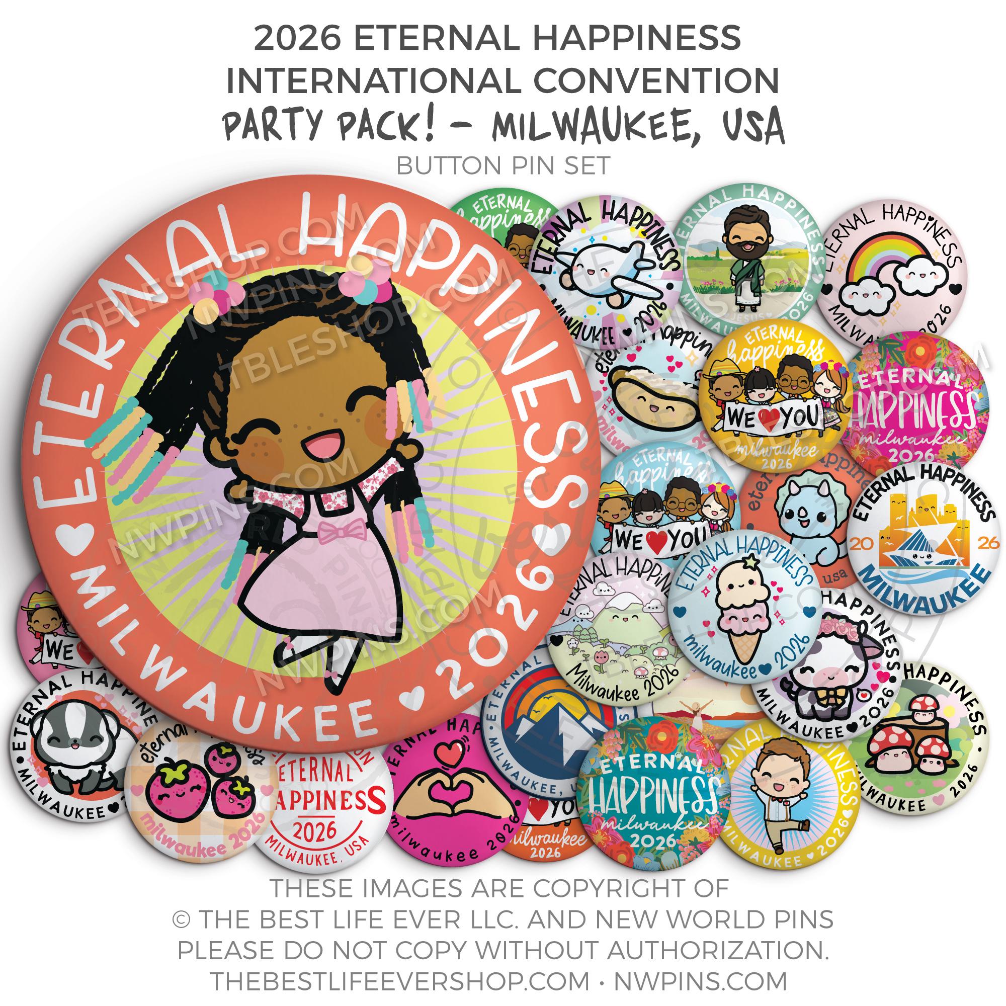 ❤︎ Eternal Happiness 2026 Milwaukee USA International Convention Button Pins Party Pack ❤︎