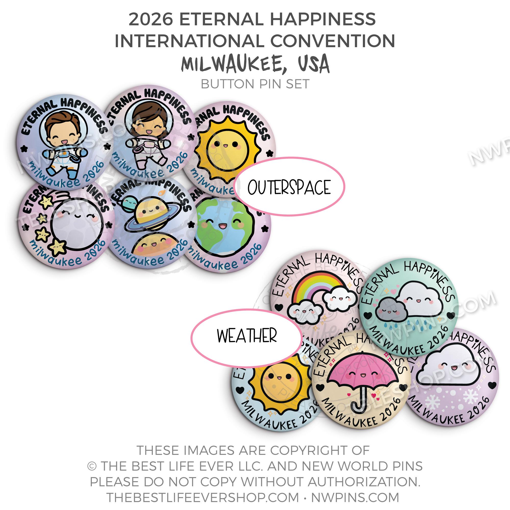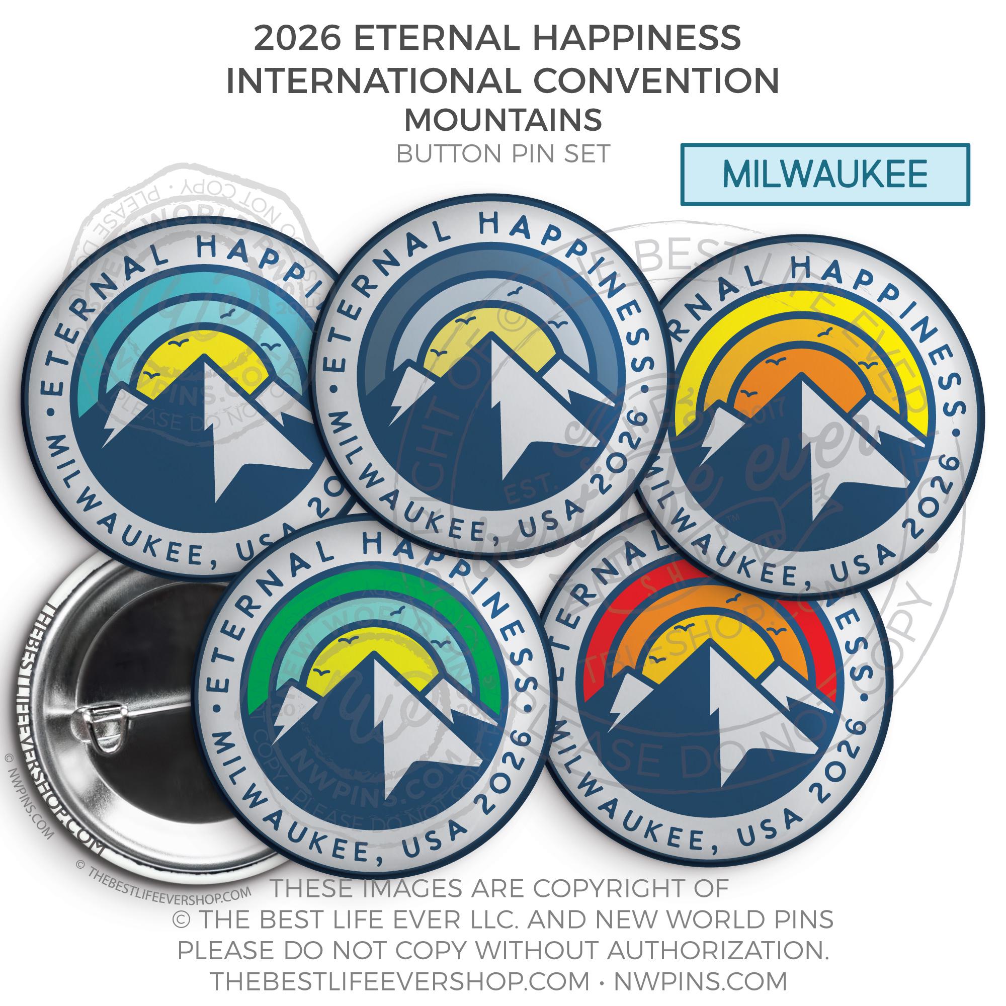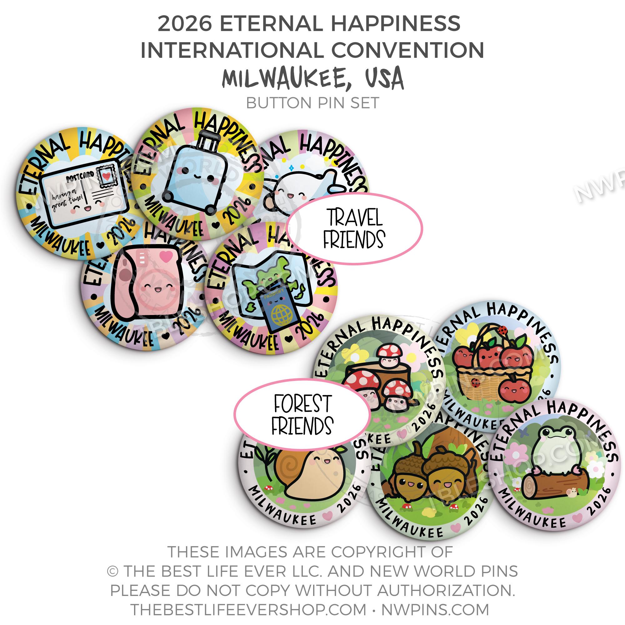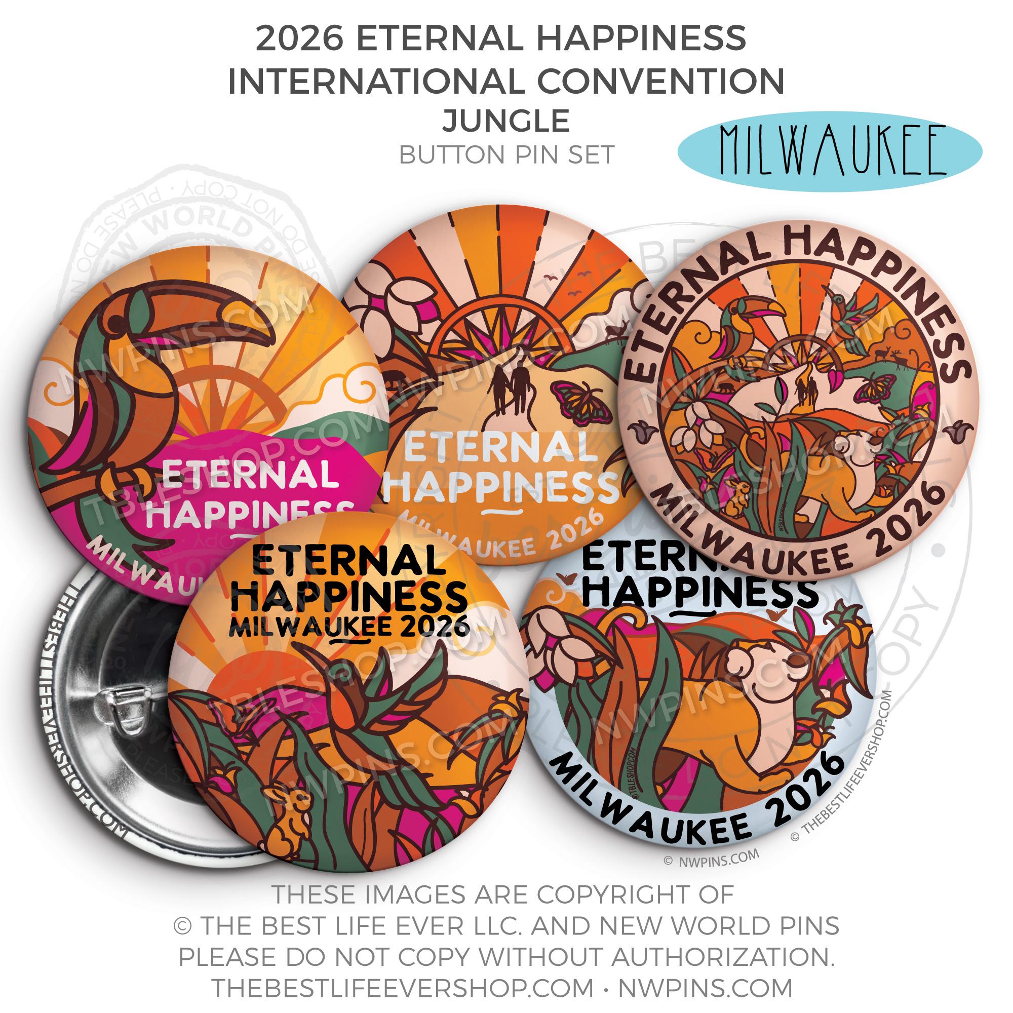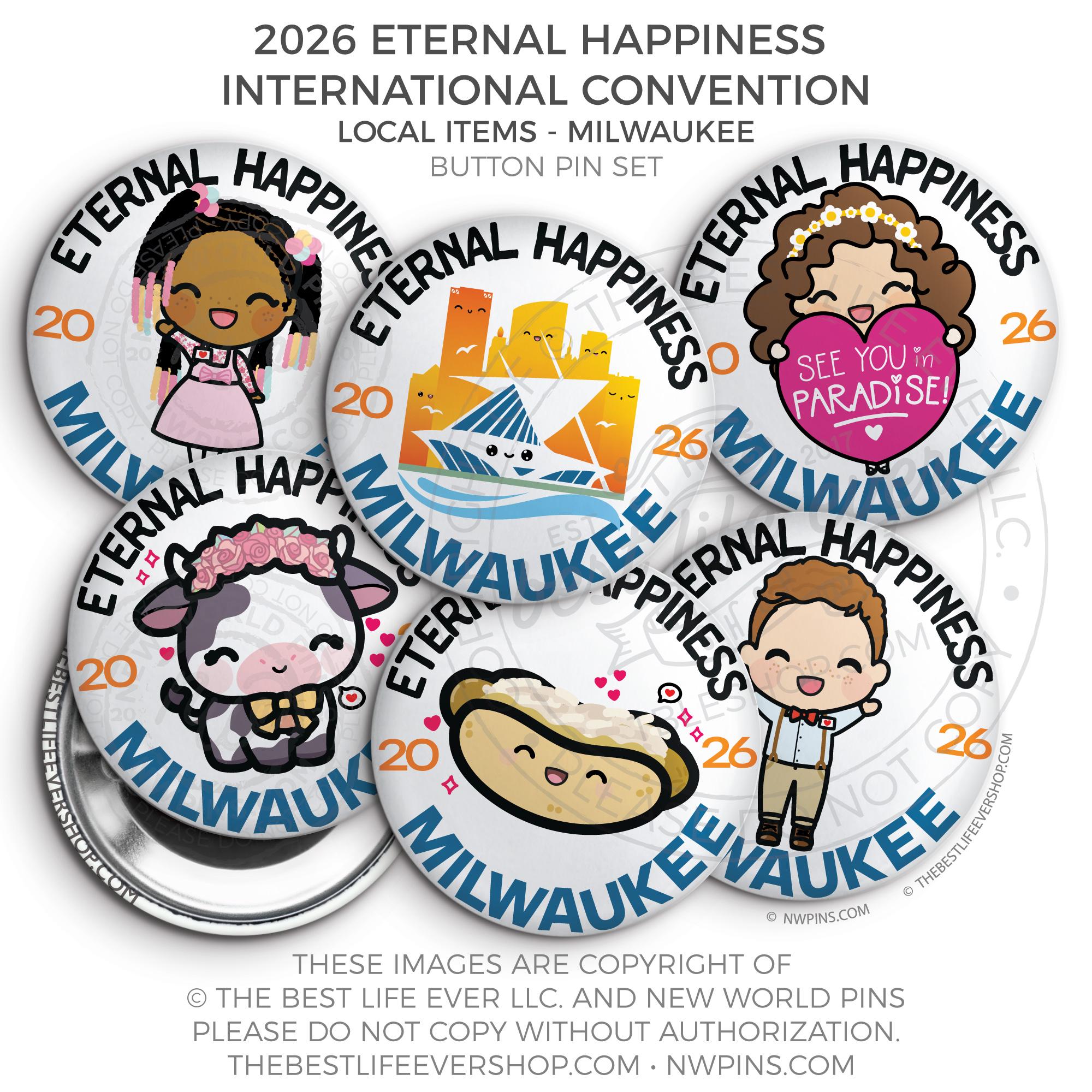 ❤︎ Eternal Happiness 2026 Milwaukee USA International Convention Button Pins Party Pack ❤︎