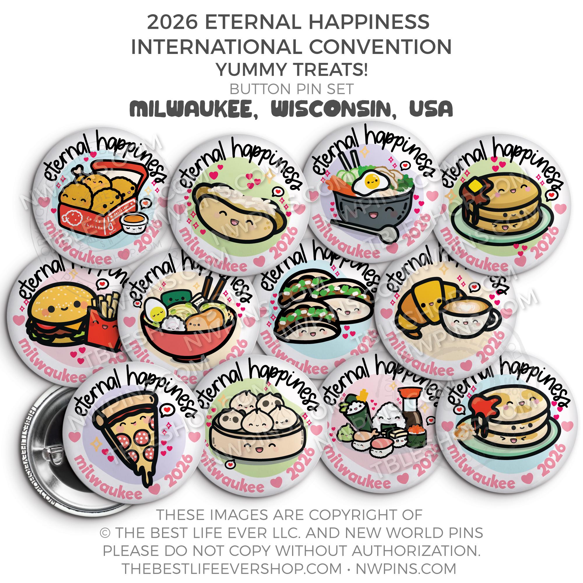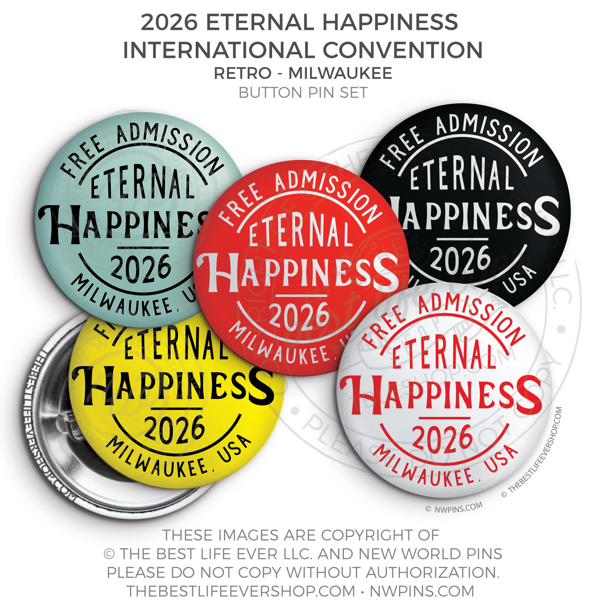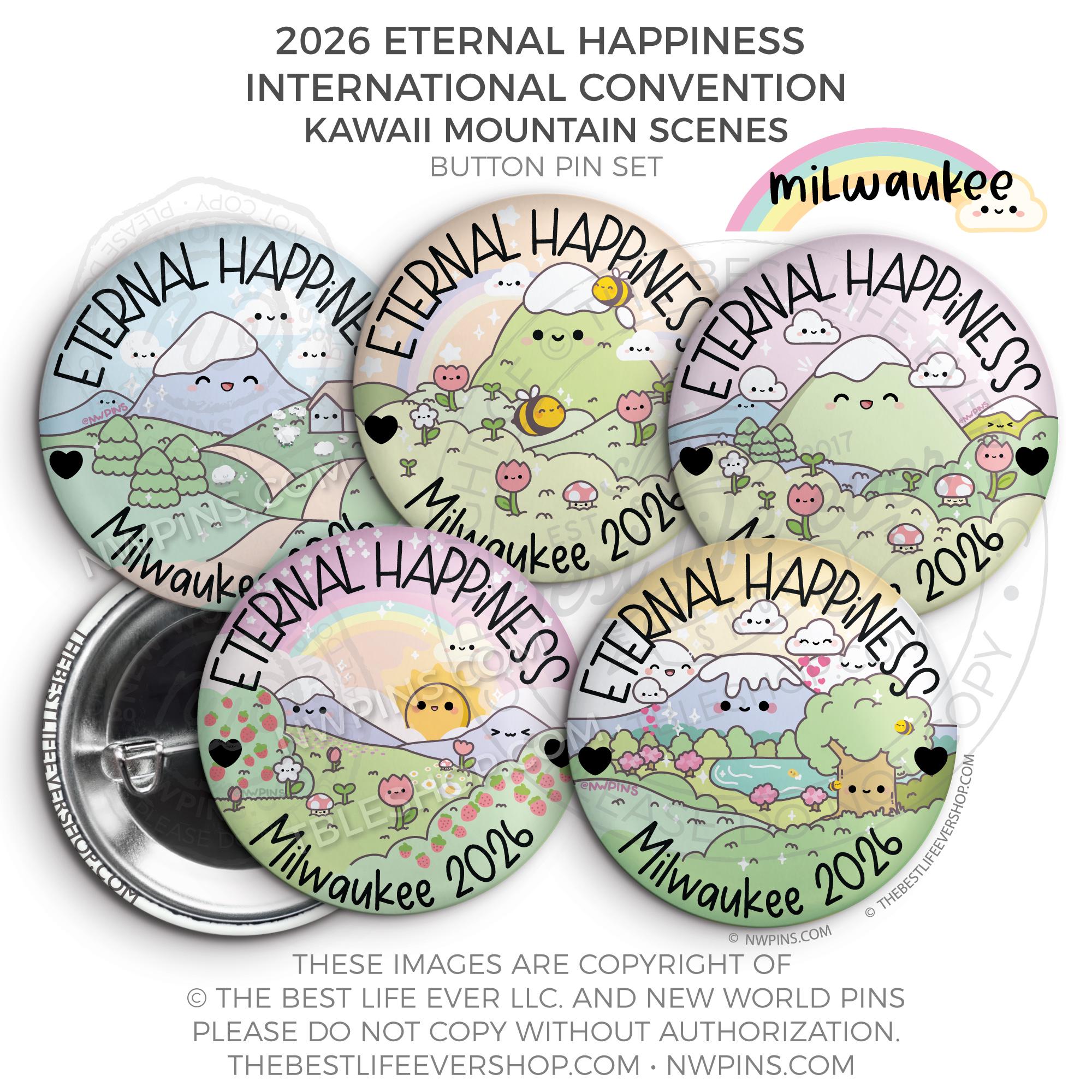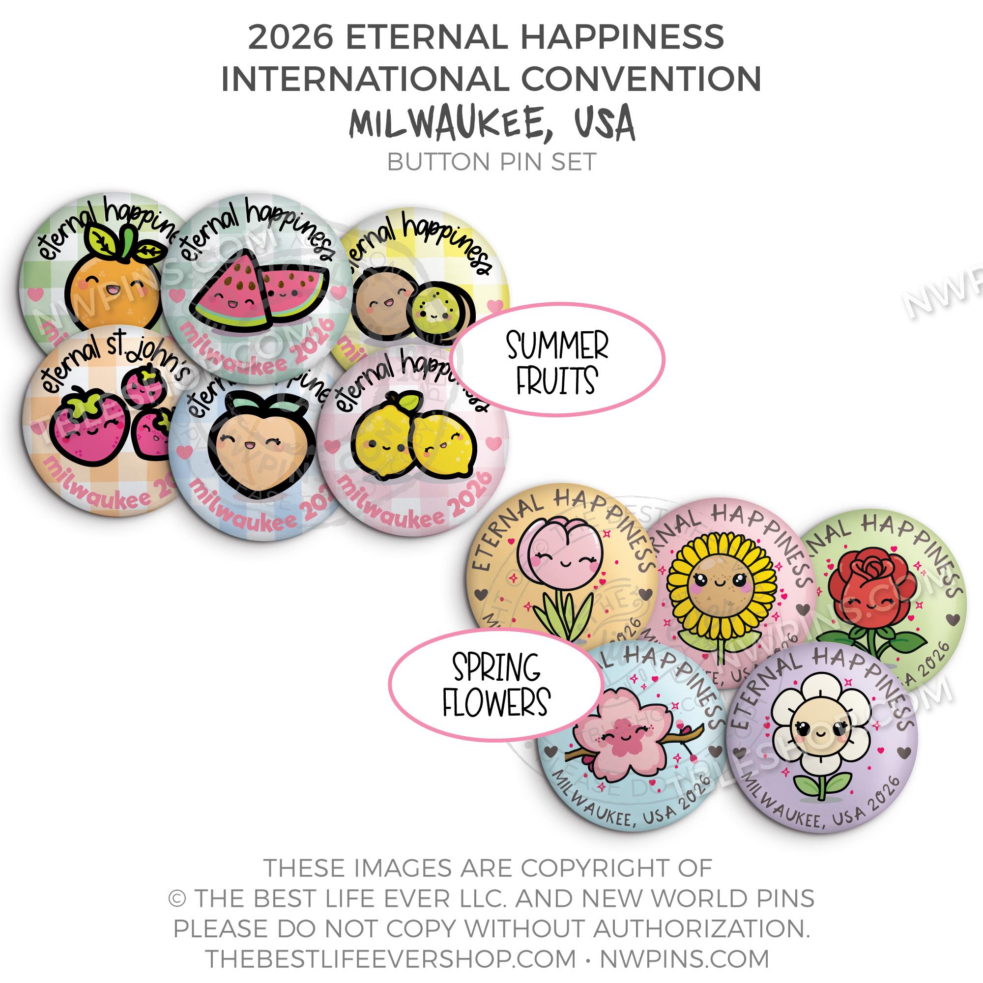 ❤︎ Eternal Happiness 2026 Milwaukee USA International Convention Button Pins Party Pack ❤︎