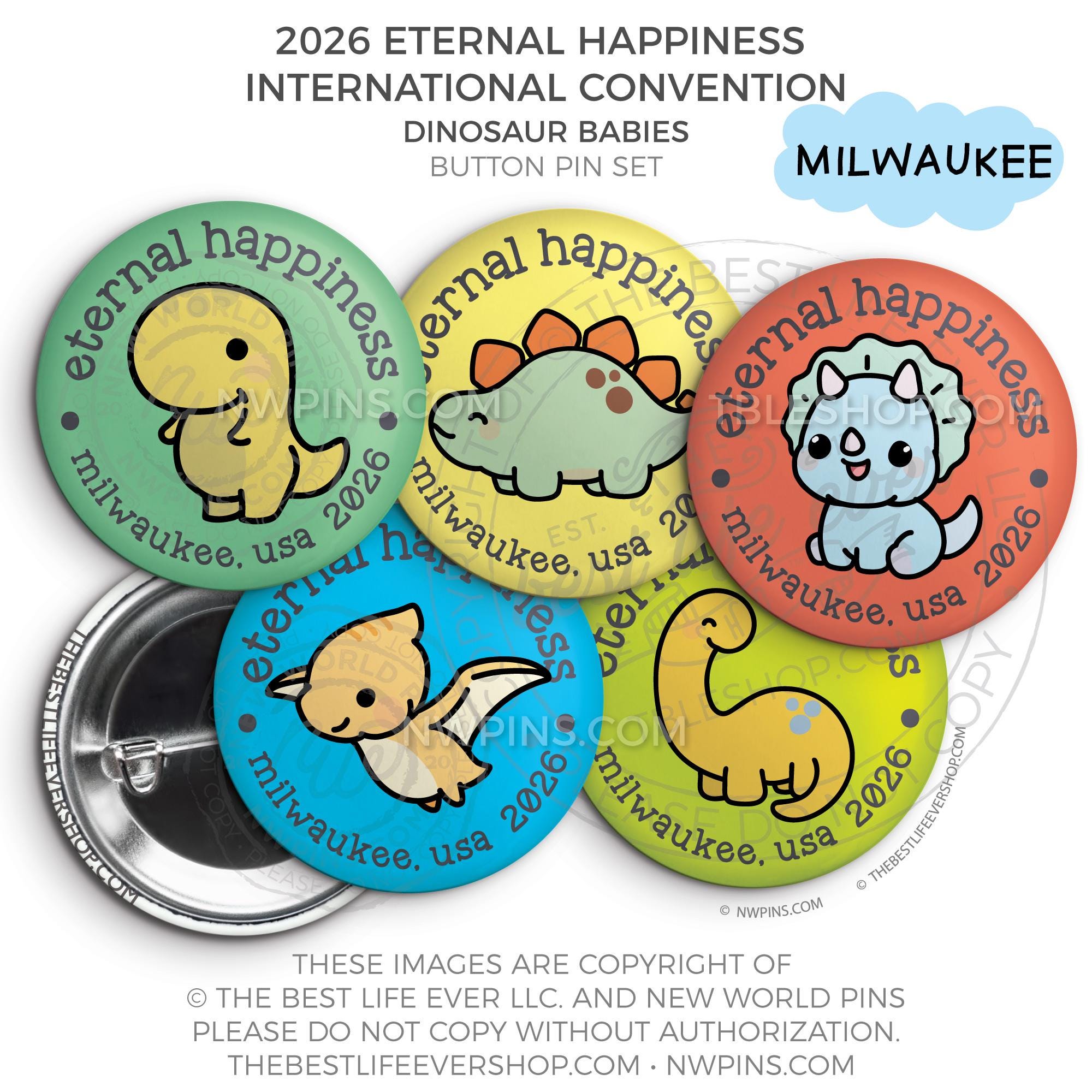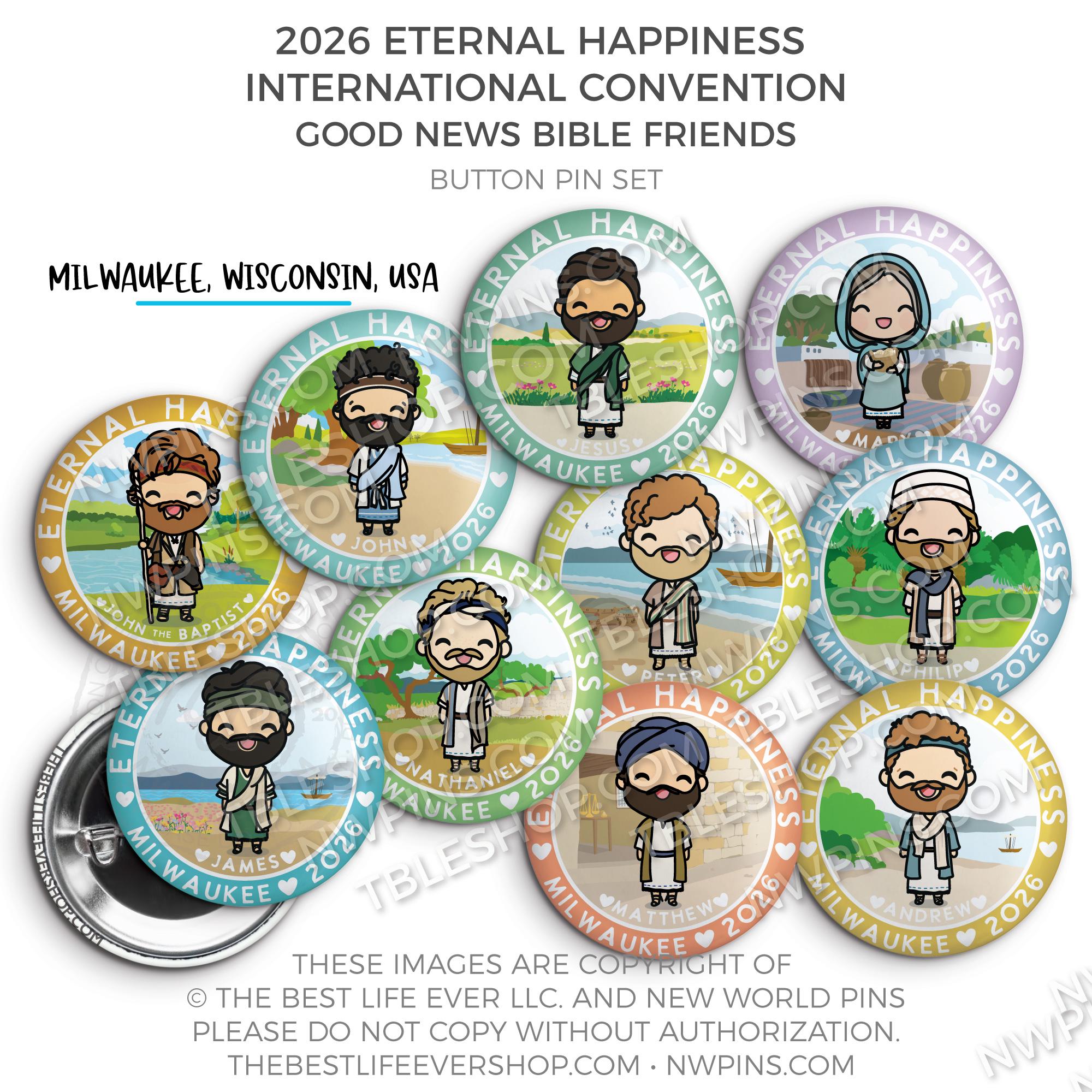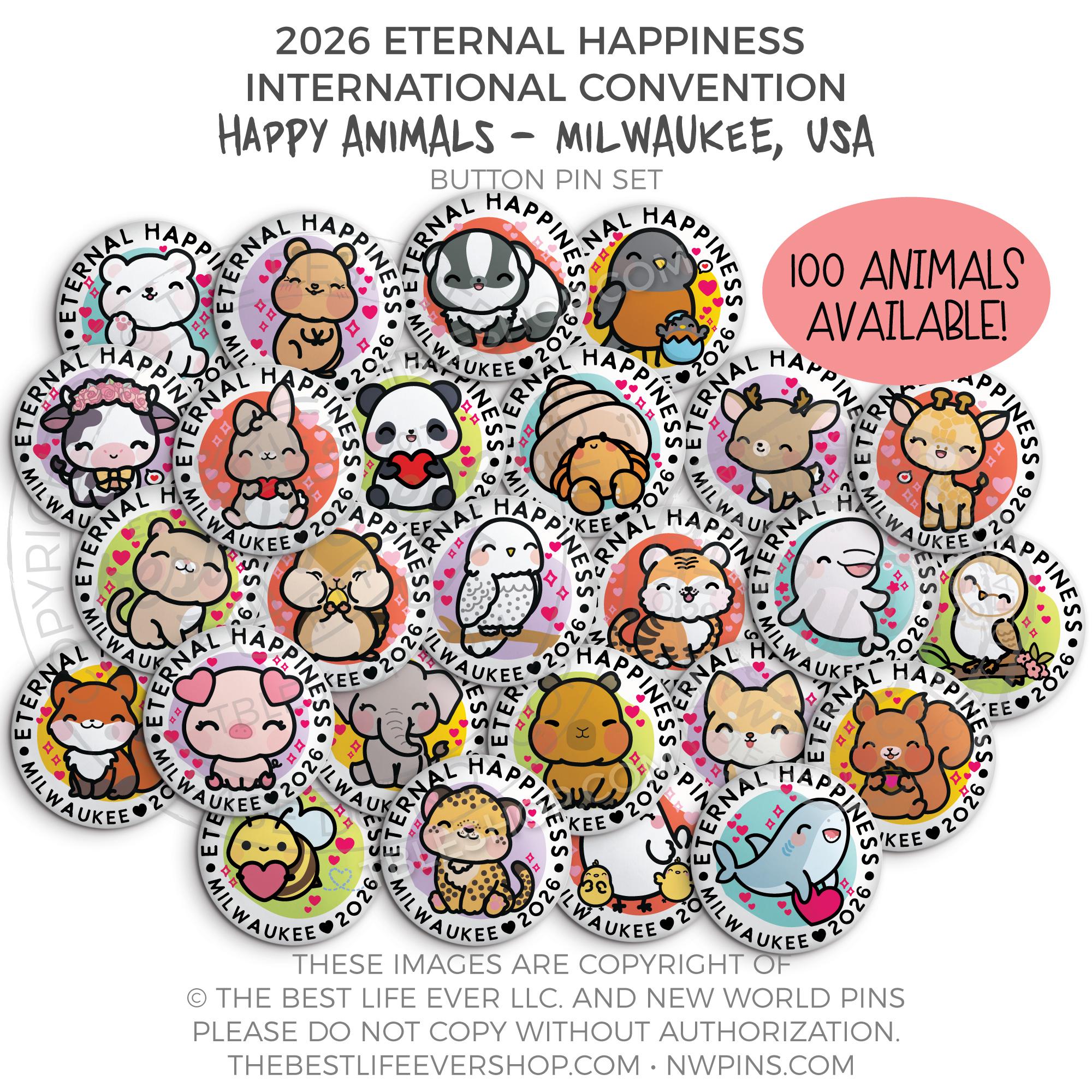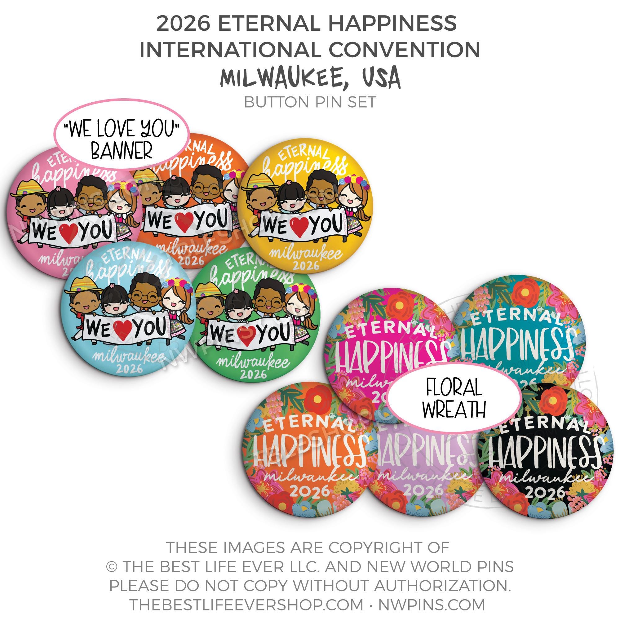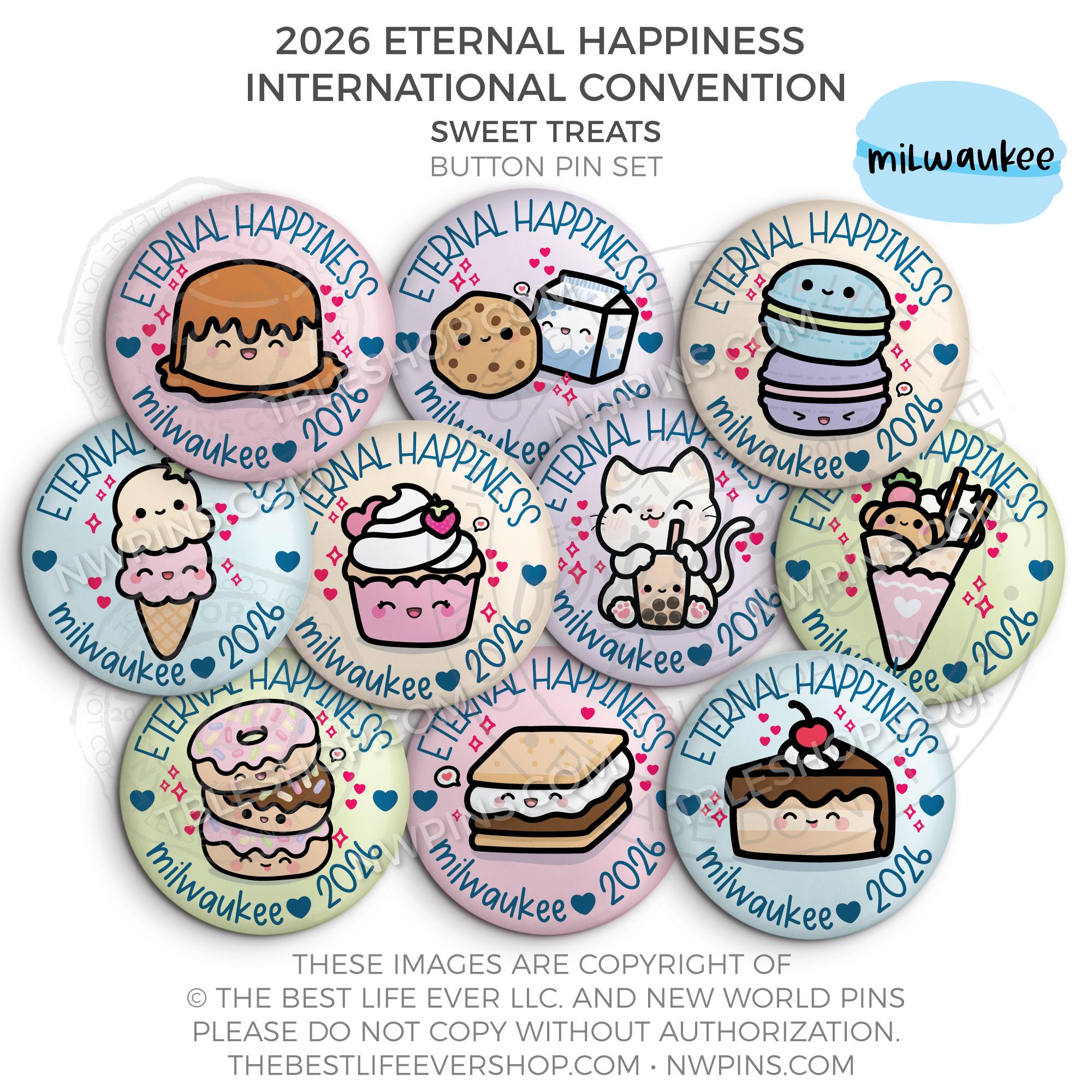 ❤︎ Eternal Happiness 2026 Milwaukee USA International Convention Button Pins Party Pack ❤︎