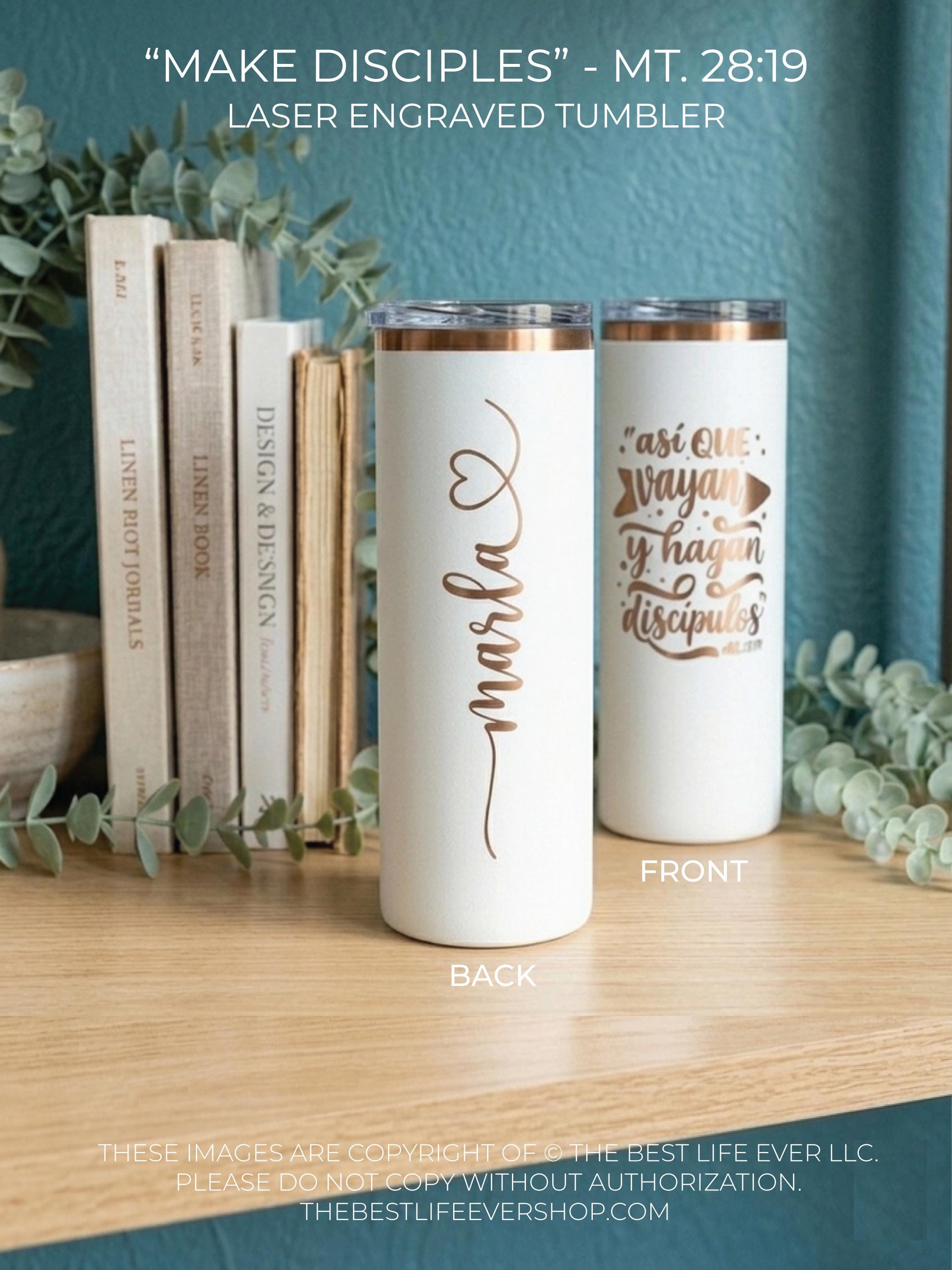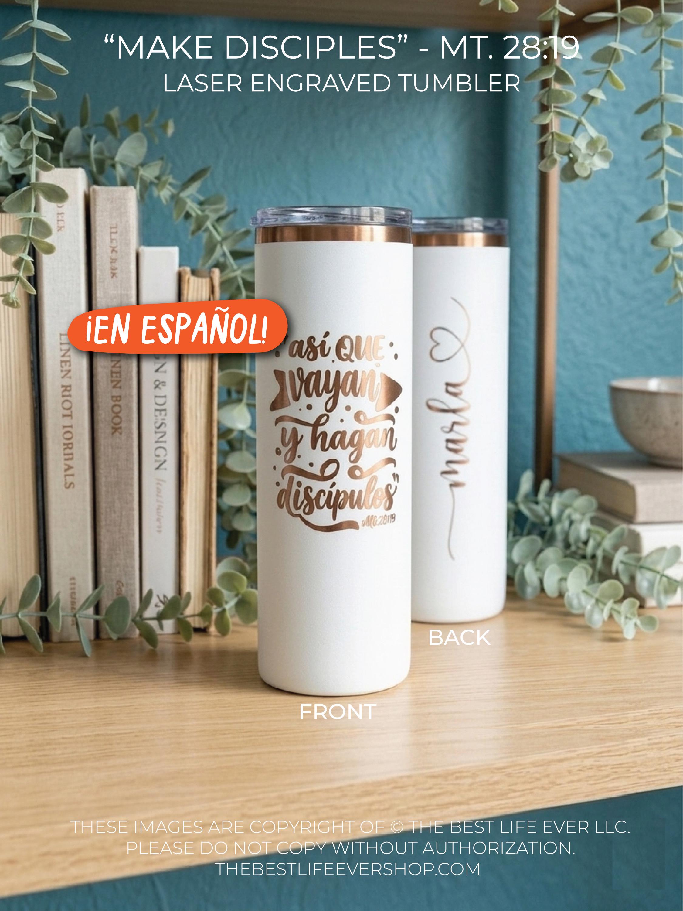 20 oz Personalized Tumbler – "Make disciples" -Mt. 28:19 - Available in English or Spanish