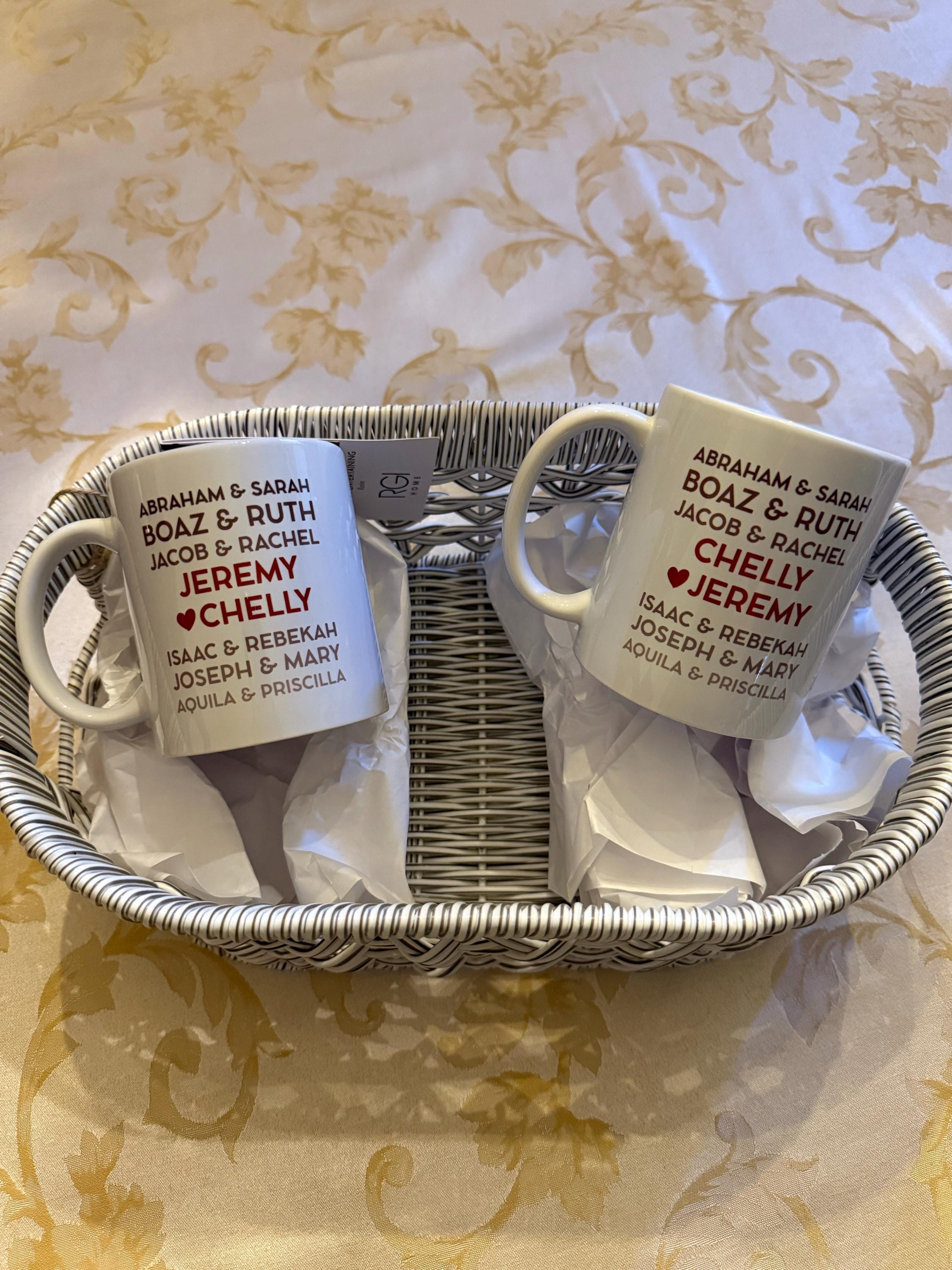 PLEASE SEND US A MESSAGE WITH THE NAME(S) YOU WOULD LIKE ON THE MUG. MAXIMUM OF 10 CHARACTERS PER NAME.