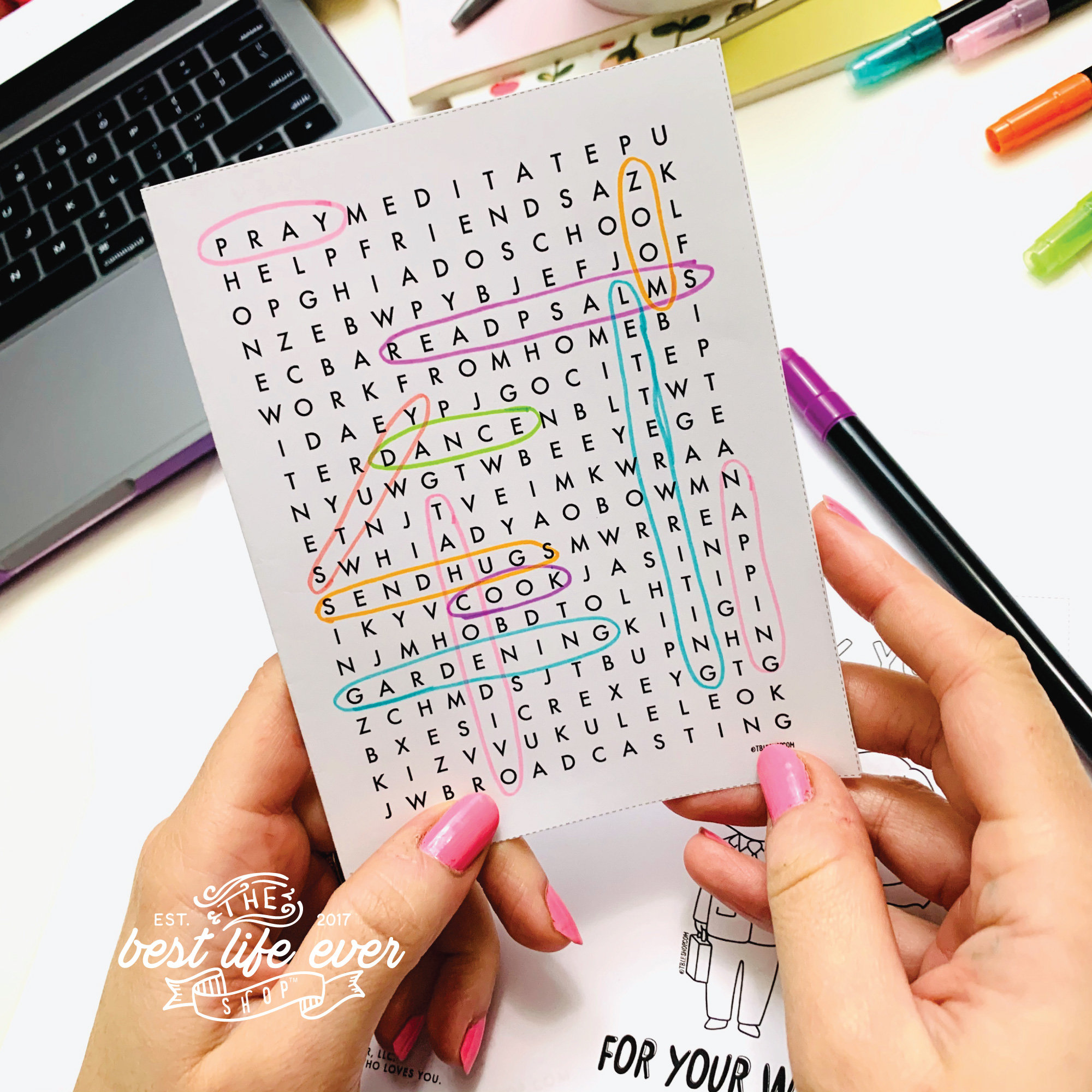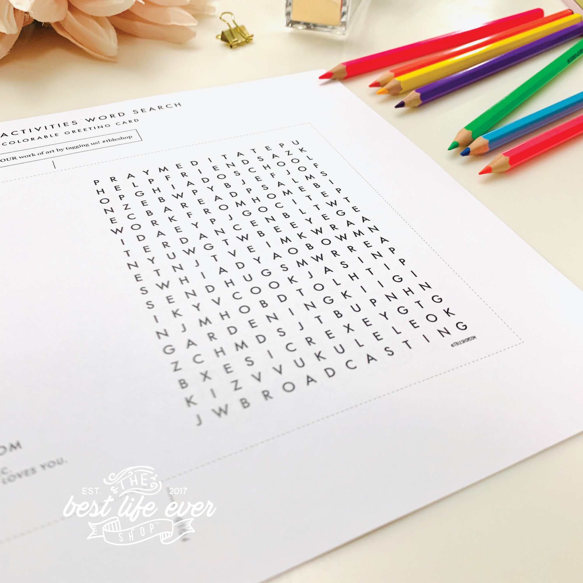 Best Life Ever themed crossword puzzle activity & Greeting Card- printable- PDF download